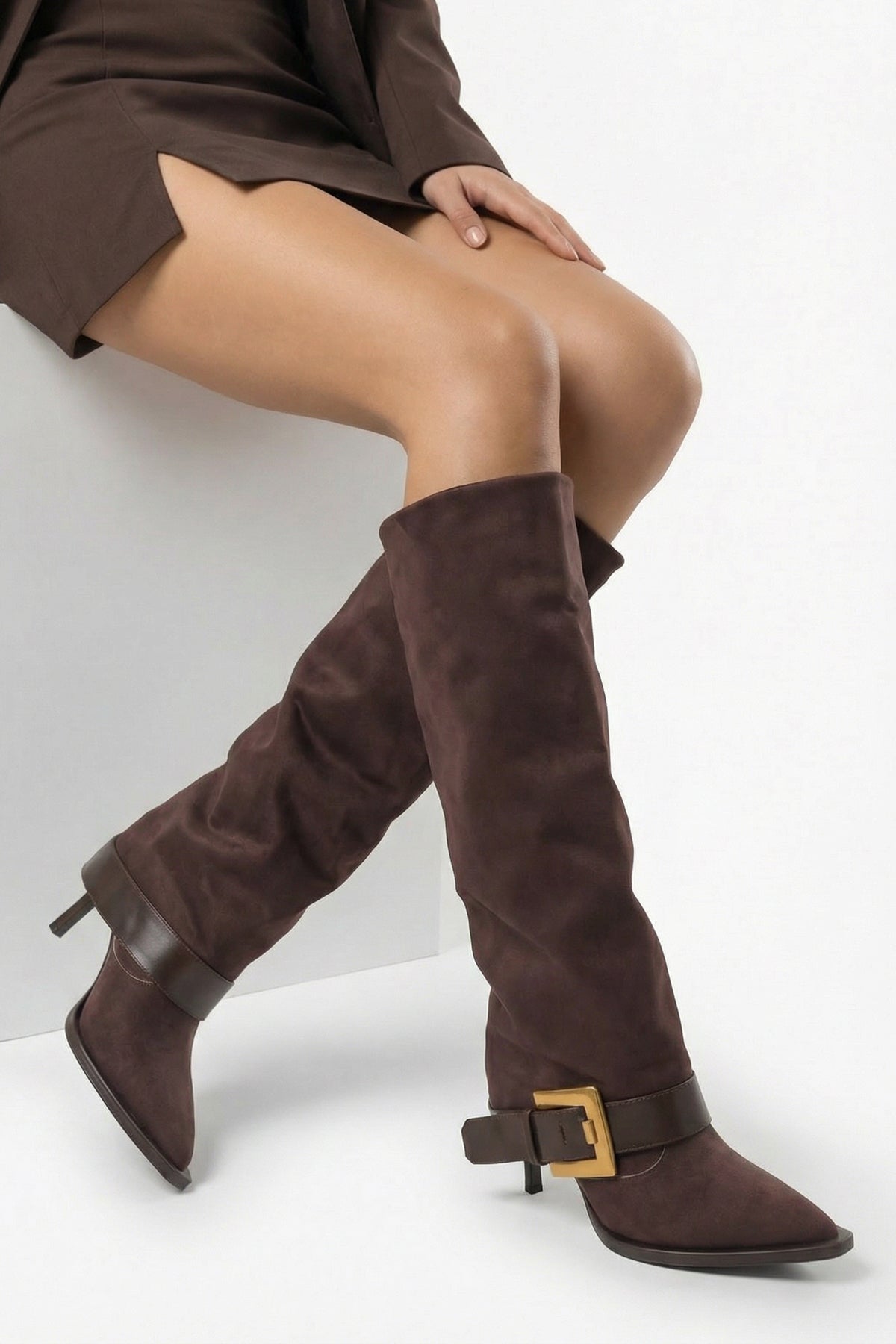 Urimas Kadın Topuklu Çizme - Kahve Süet