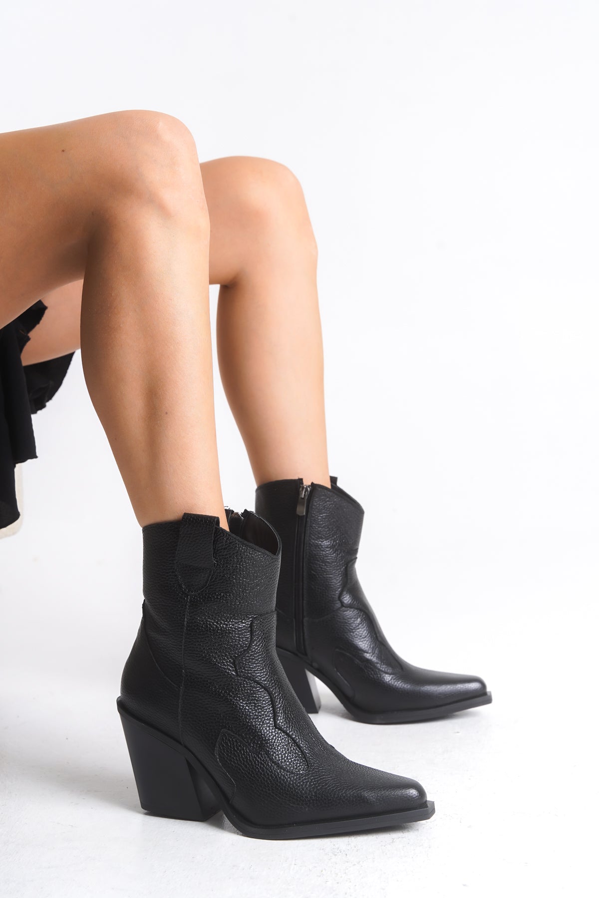 Avenor Kadın Hakiki Deri Western Bot - Siyah