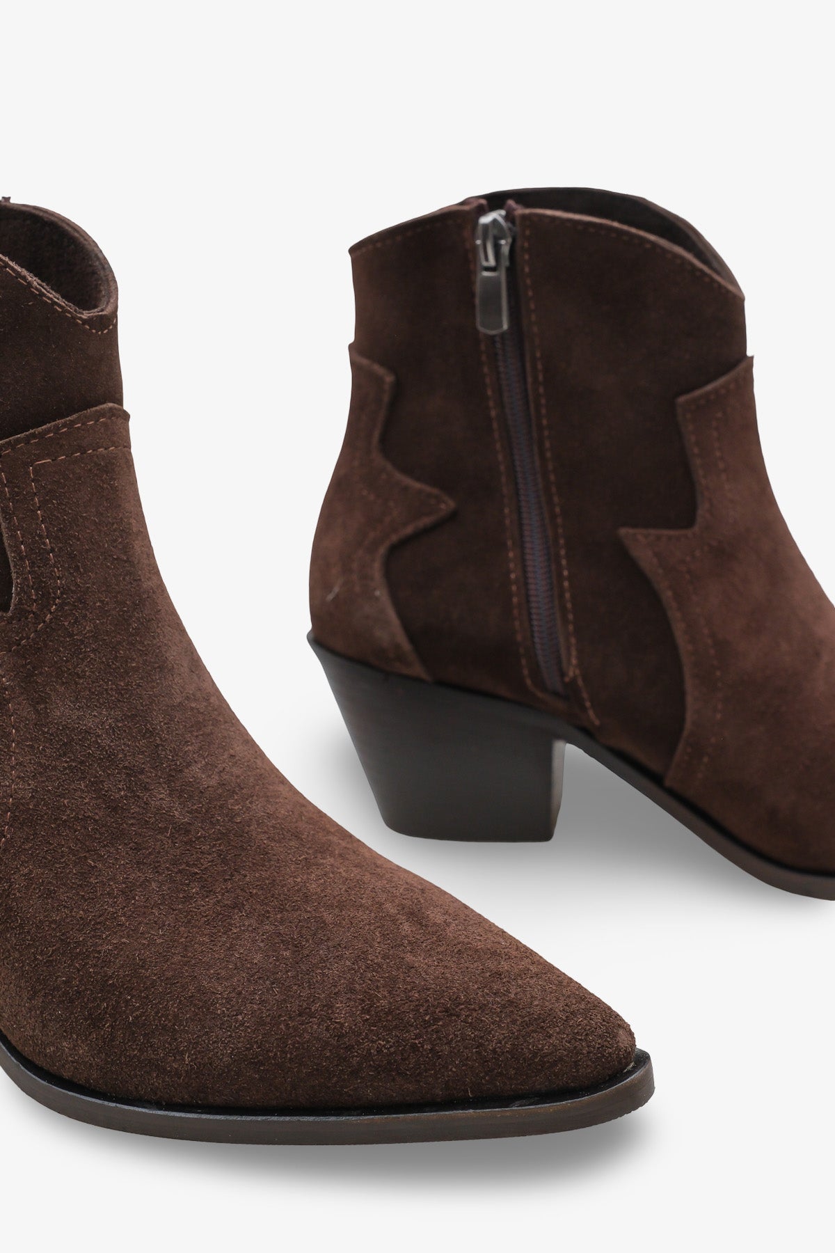 Nuvia Kadın Hakiki Deri Western Bot - Kahve Süet
