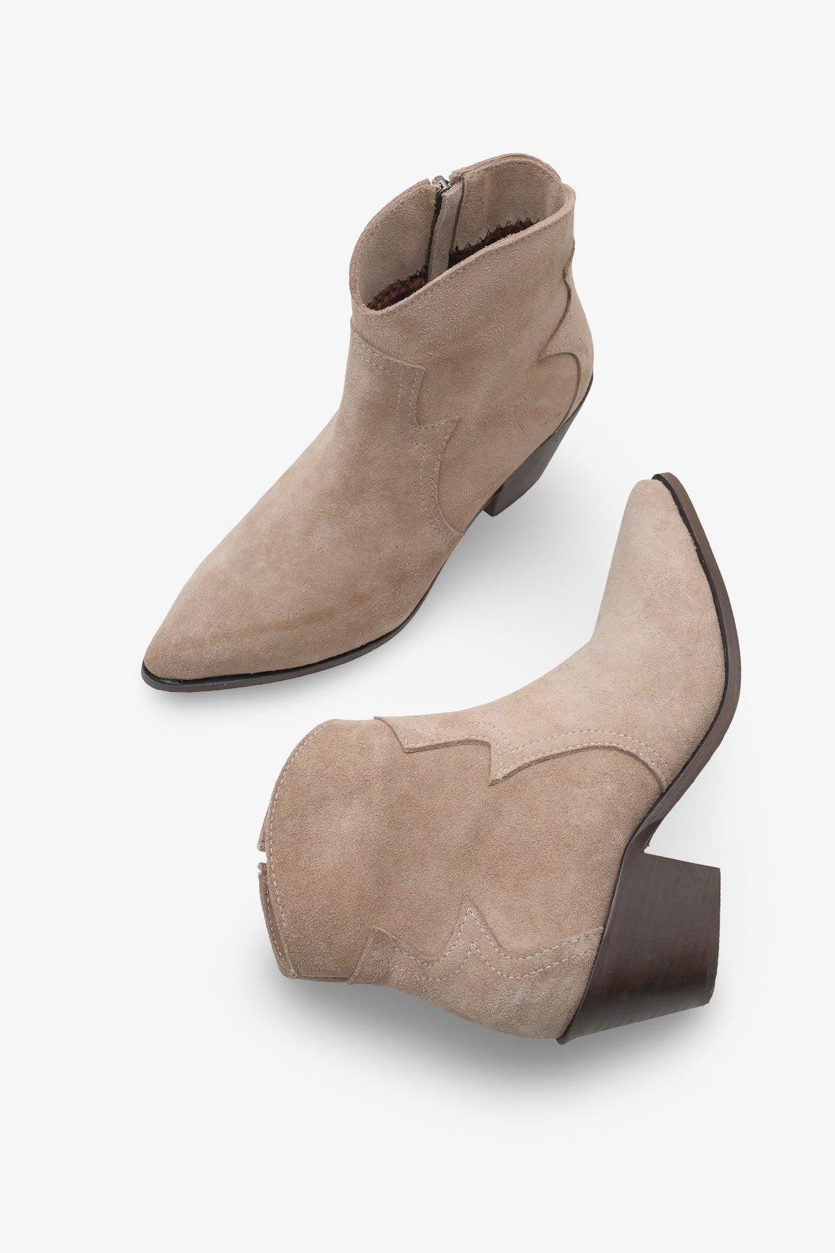 Vizon Süet Dokusu: Yumuşak ve kadifemsi süet yüzey, vizon (vizon/bej) renginin sıcak ve sofistike tonuyla birleşerek bota lüks ve modern bir hava katar.