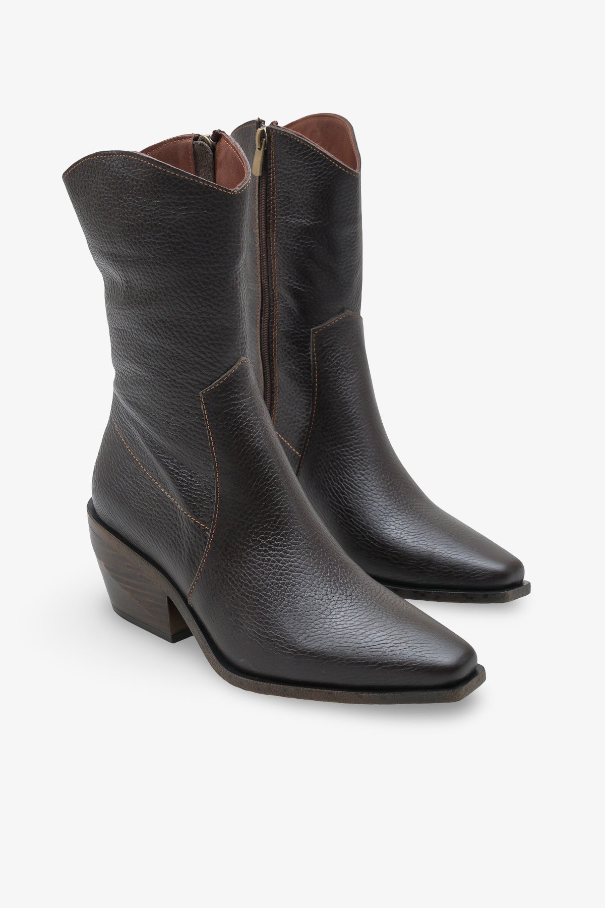 Skaye Kadın Hakiki Deri Western Bot - Kahve