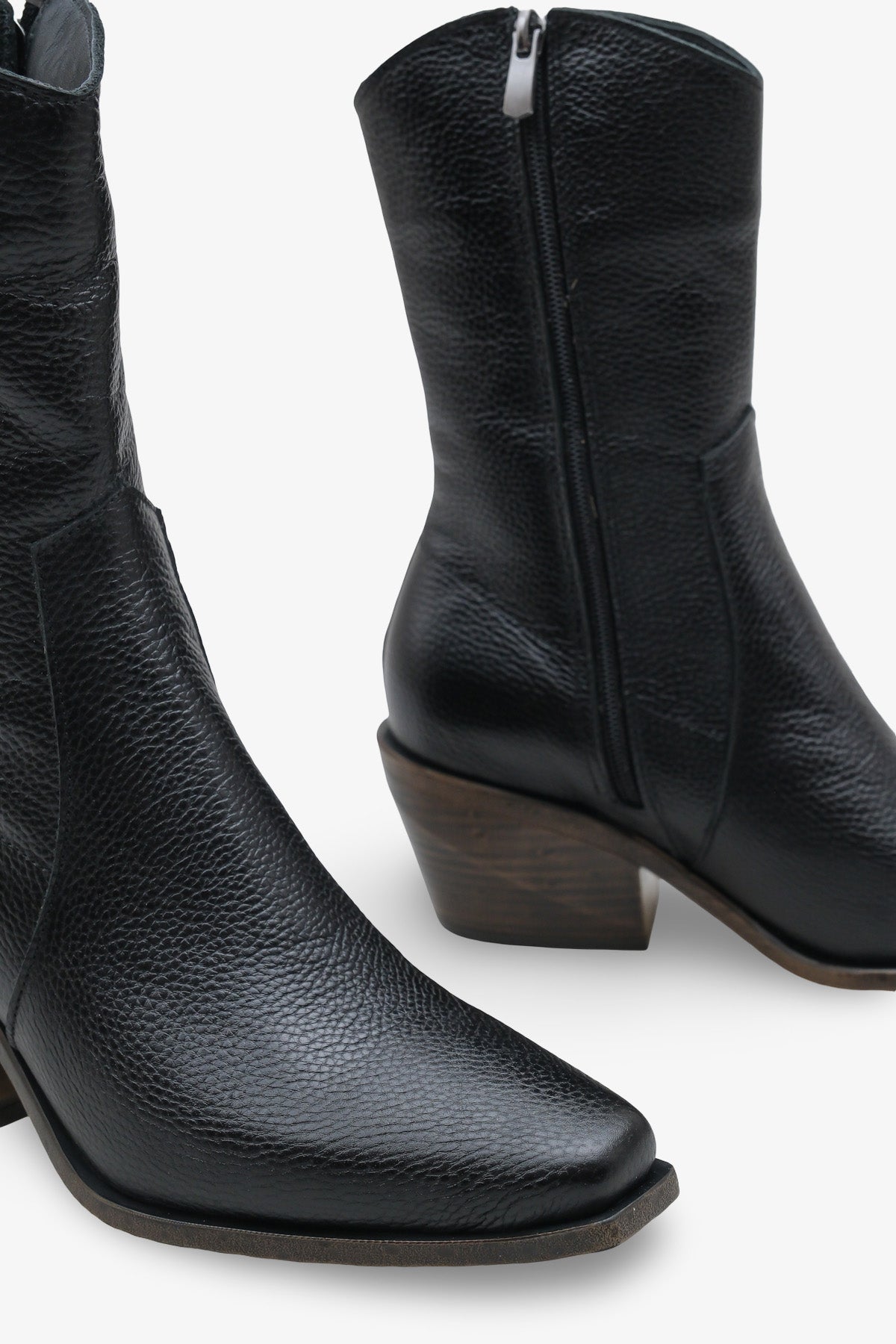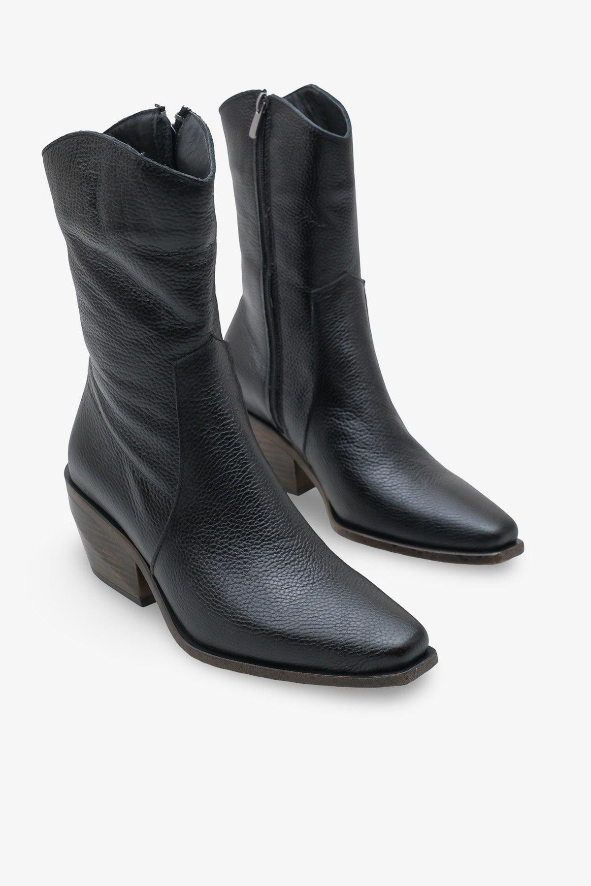Skaye Kadın Hakiki Deri Western Bot - Siyah