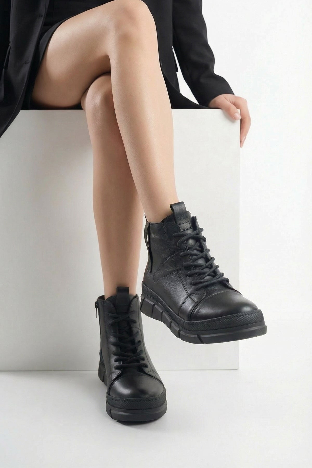 Diellana Kadın Hakiki Deri Günlük Bot - Siyah