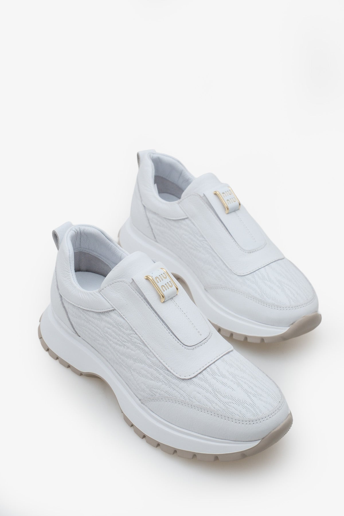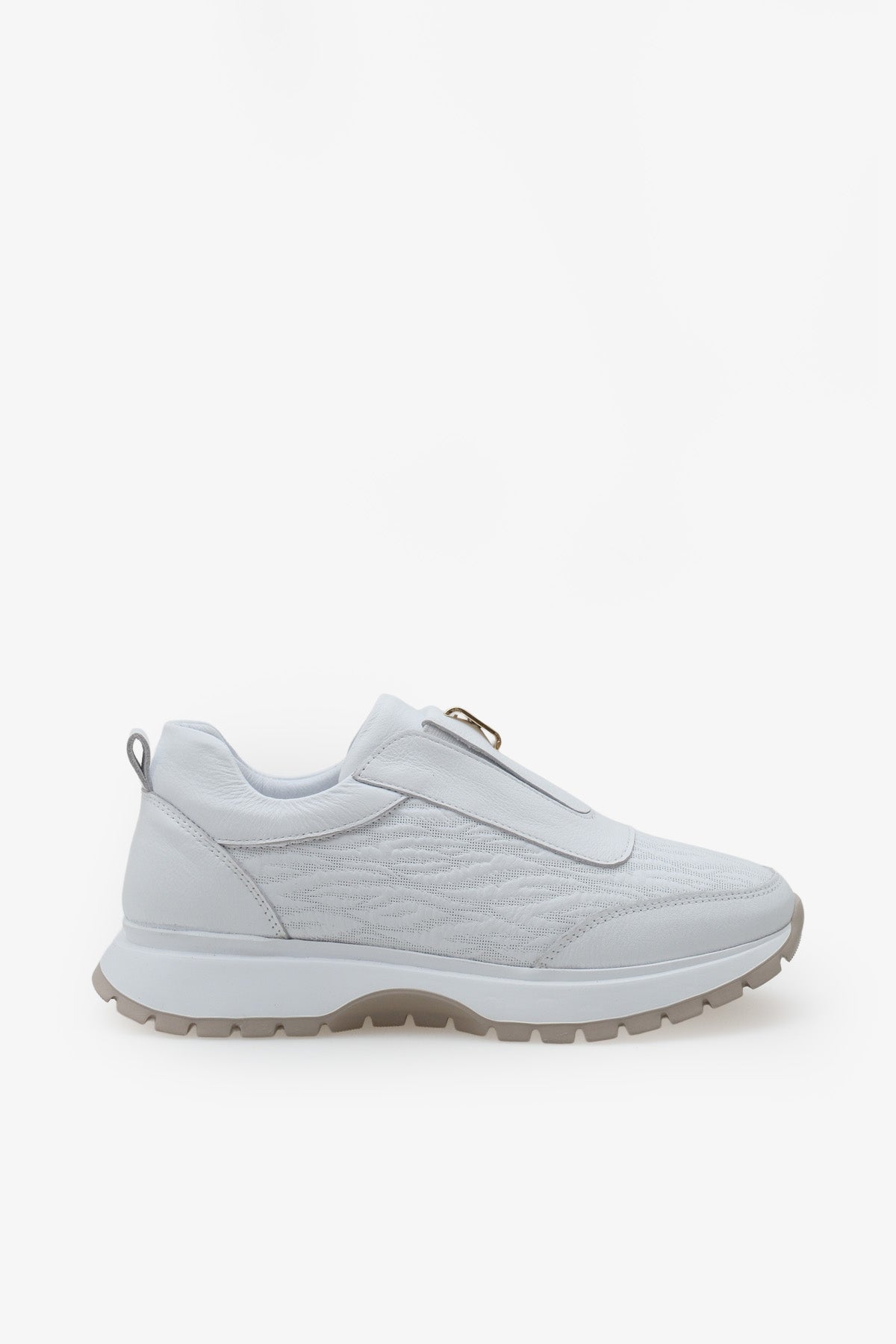 Hakiki deri materyali ve özel dokulu yüzey tasarımıyla üretilen bu bej sneaker, spor şıklığınızı lüks bir dokunuşla tamamlar.