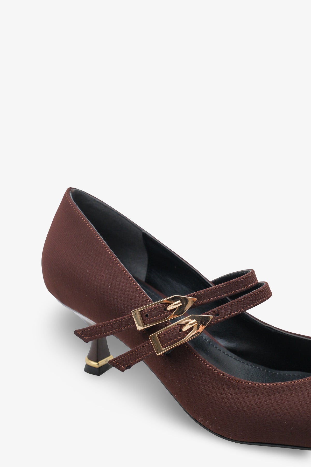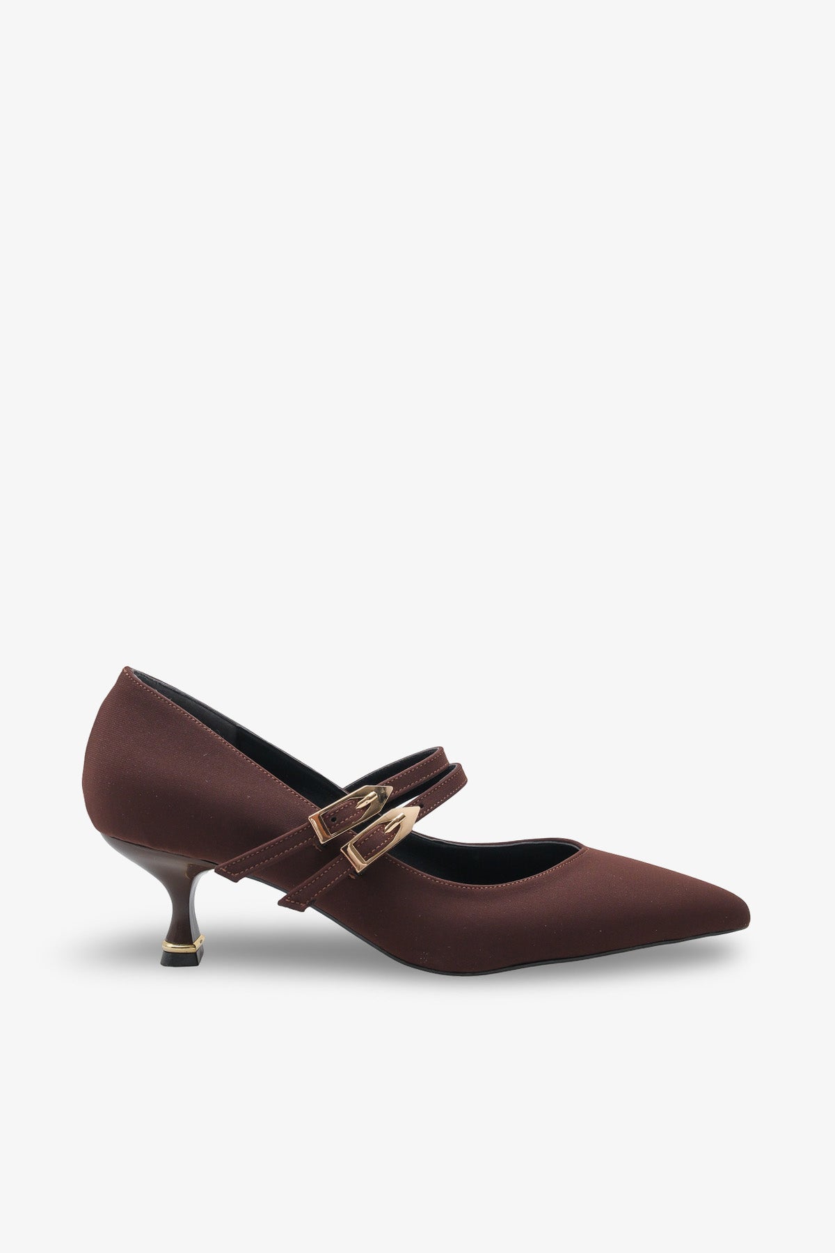 Glorinda Kadın Topuklu Bantlı Ayakkabı - Kahve Nubuk