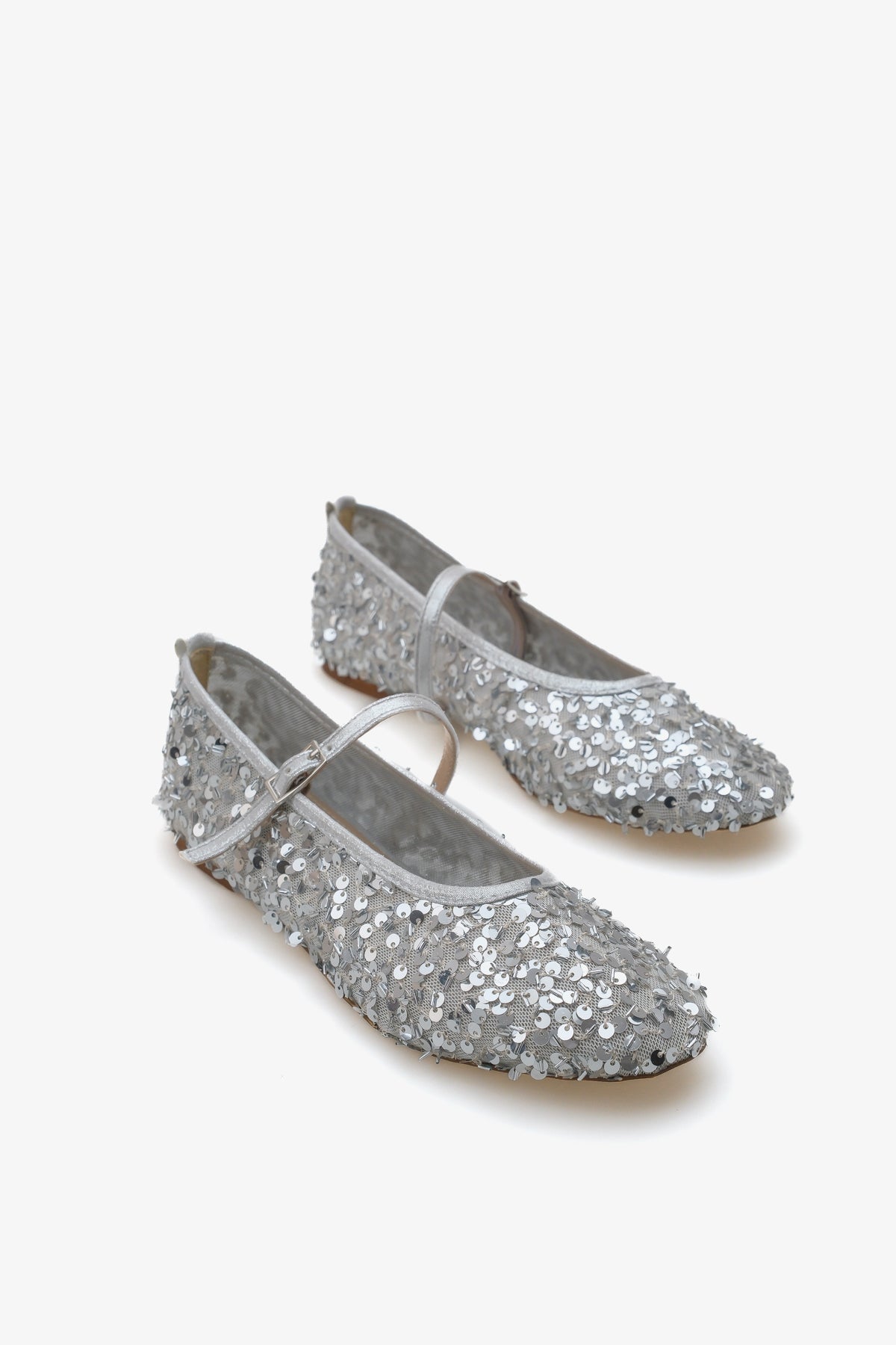 Nefes alan tül üzerine işlenmiş parlak dokusu, modern Mary Jane tasarımıyla birleşerek gardırobunuzun en ışıltılı parçası olmaya adaydır.