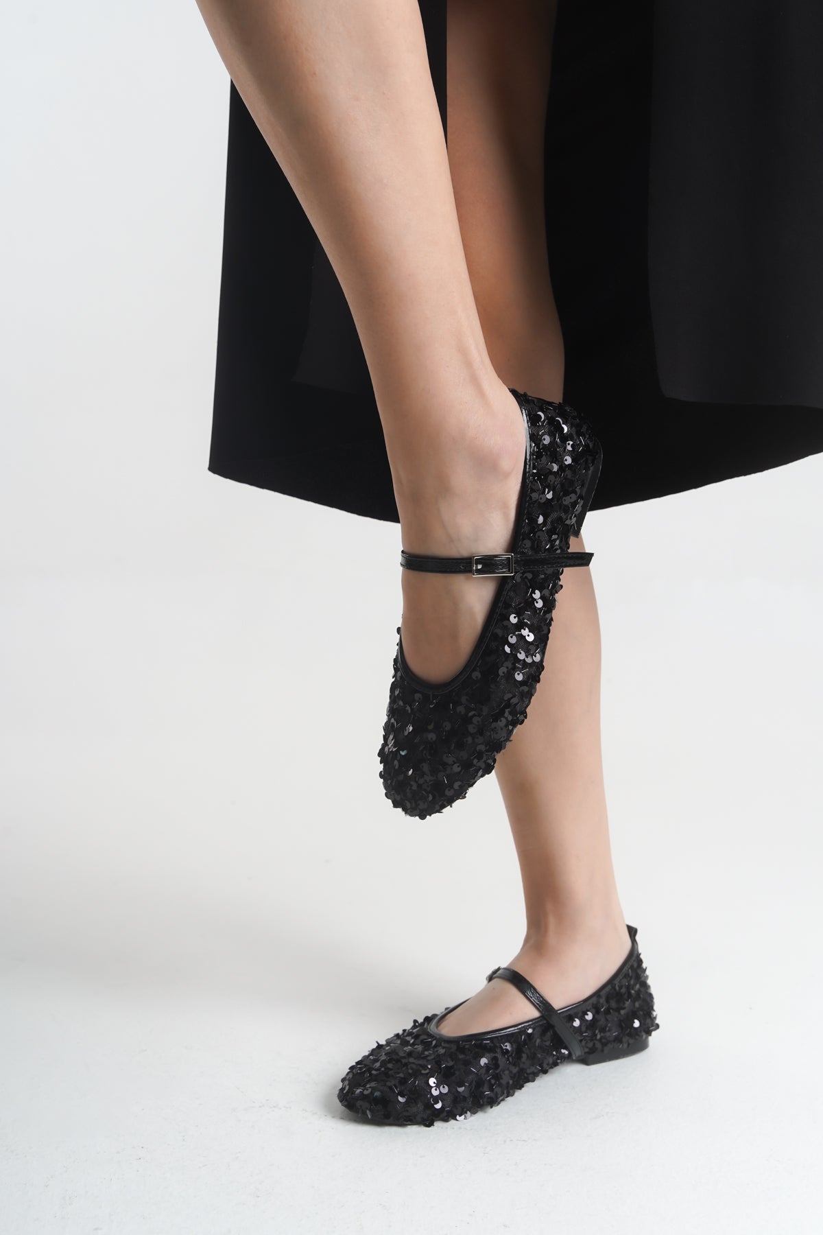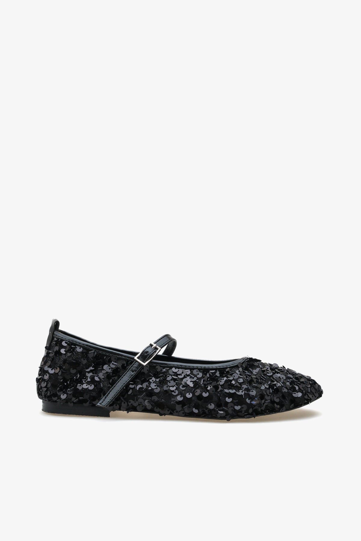 Nefes alan tül üzerine işlenmiş parlak dokusu, modern Mary Jane tasarımıyla birleşerek gardırobunuzun en ışıltılı parçası olmaya adaydır.