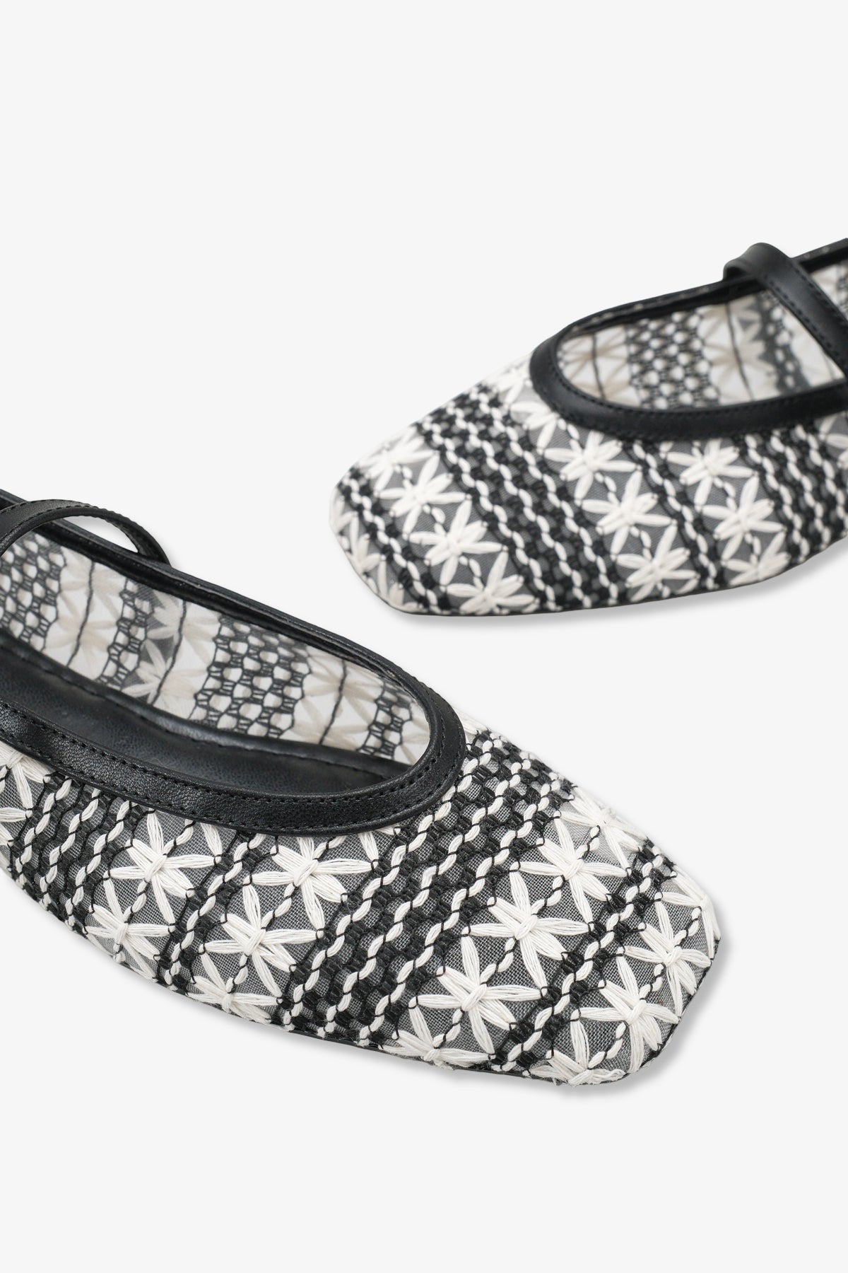 Siyah ve beyazın zamansız uyumunu yansıtan bu model, transparan (file) dokusu üzerine işlenmiş zarif çiçek ve şerit nakışlarıyla stilinize romantik, özgün ve sanatsal bir dokunuş katar.