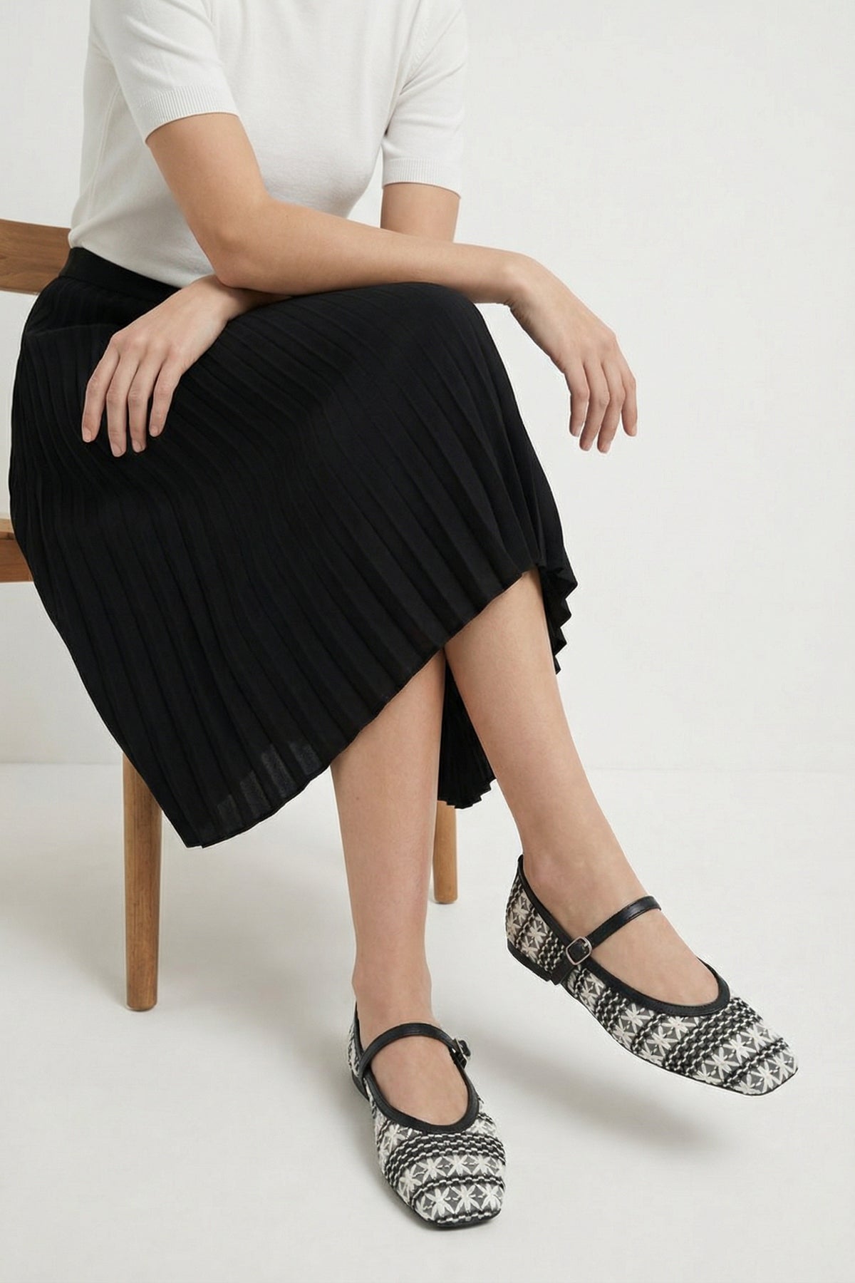 Sezonun favorisi olan modern küt burun yapısı ve klasik Mary Jane silüetinden ilham alan ayarlanabilir ince tokalı bant tasarımı, ayağınızı nazikçe kavrayarak estetik ve güvenli bir kullanım sunar.