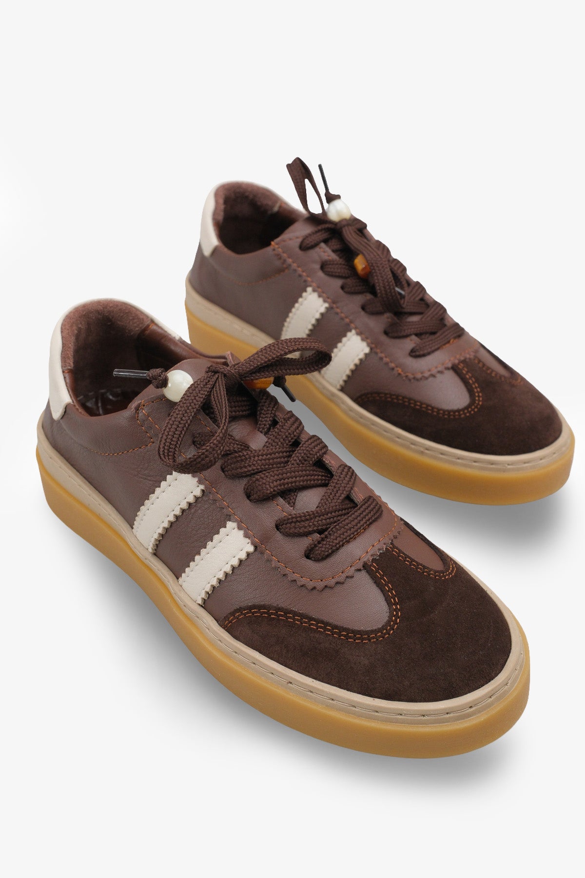 Belis Hakiki Deri Kadın Sneaker - Kahve