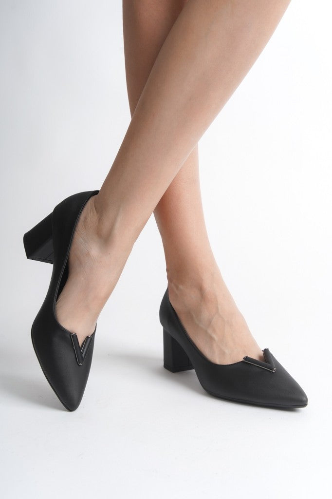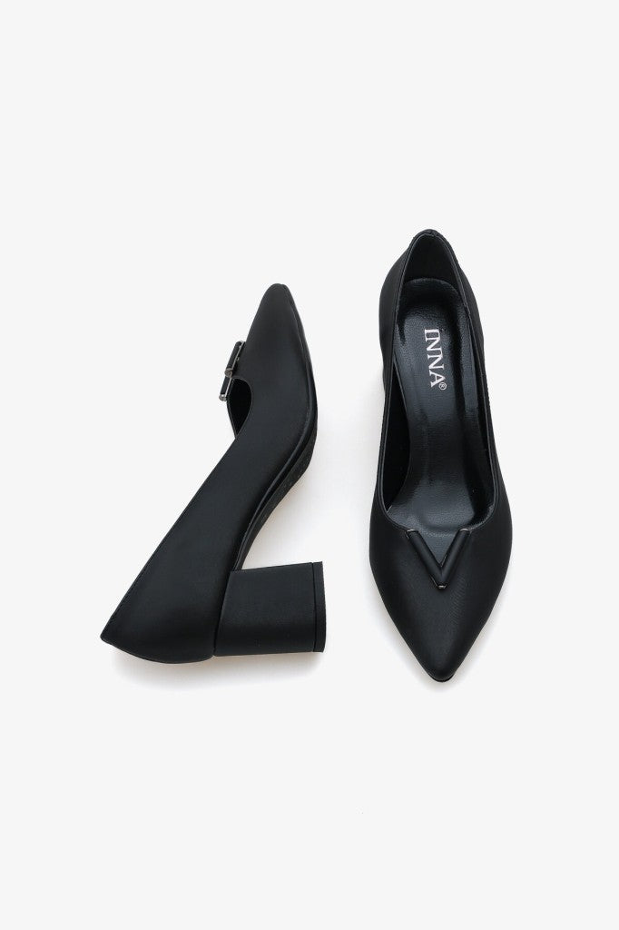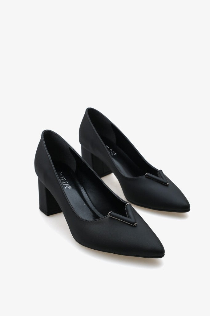 Berasu Kadın Topuklu Ayakkabı - Siyah Saten