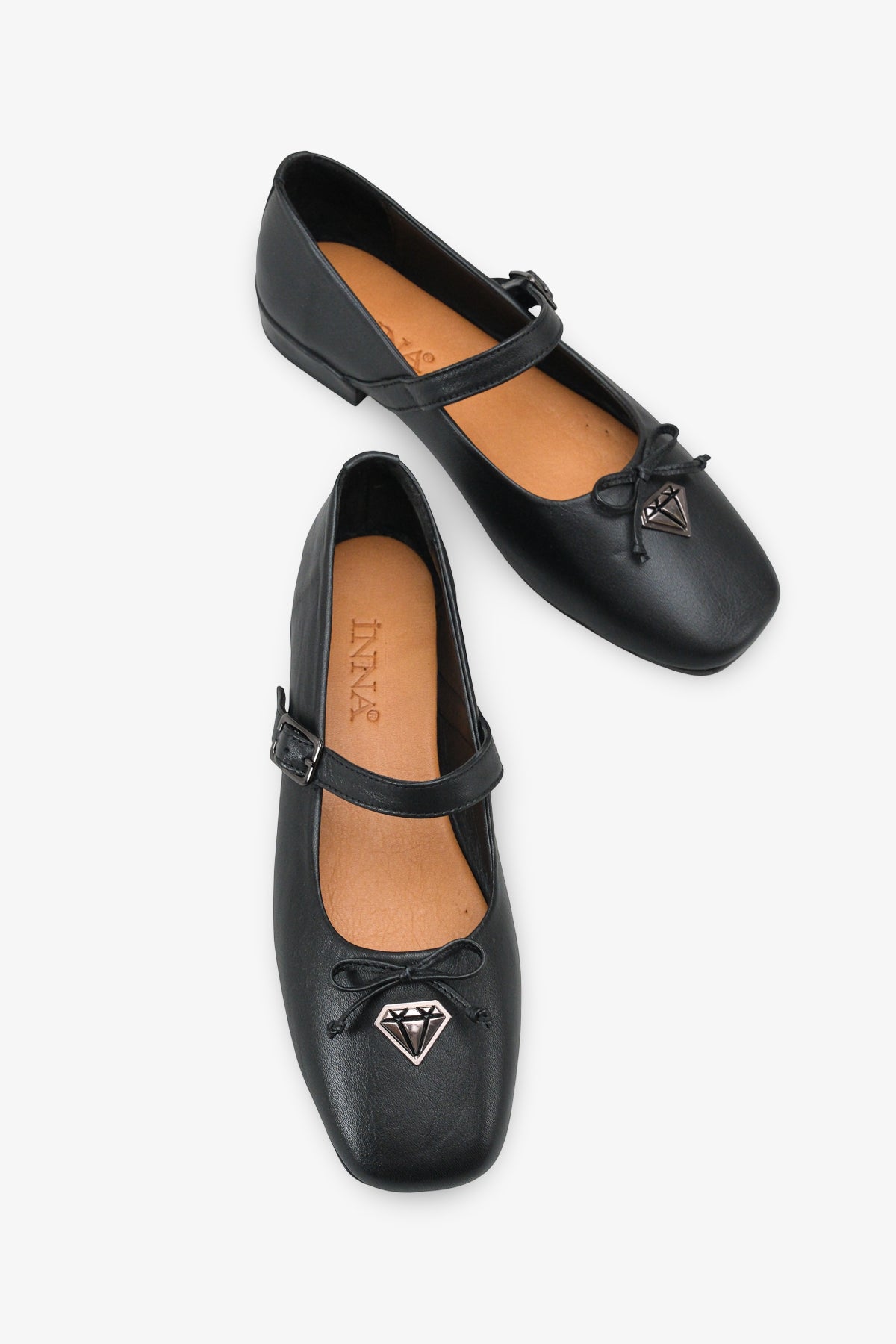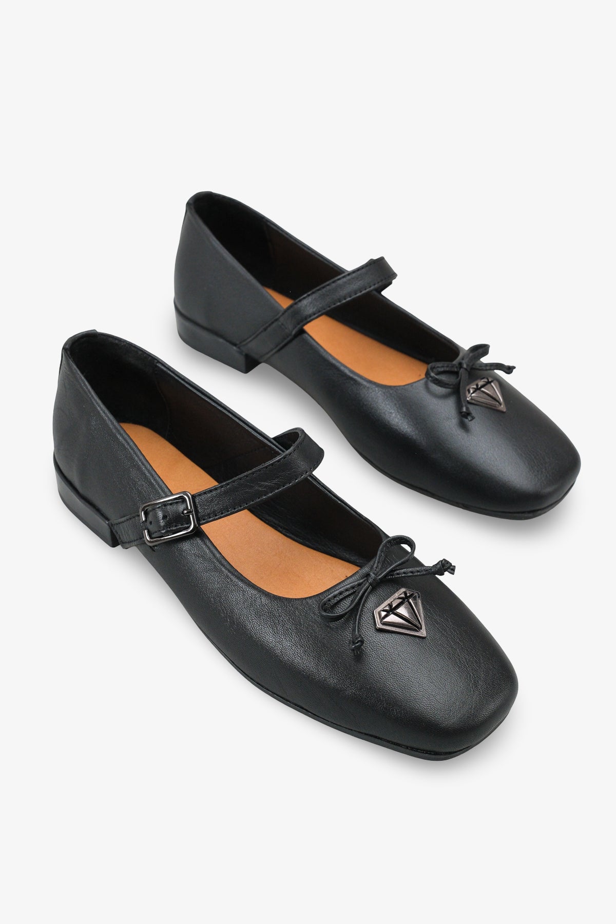 Bonie Kadın Hakiki Deri Aksesuarlı Babet - Siyah