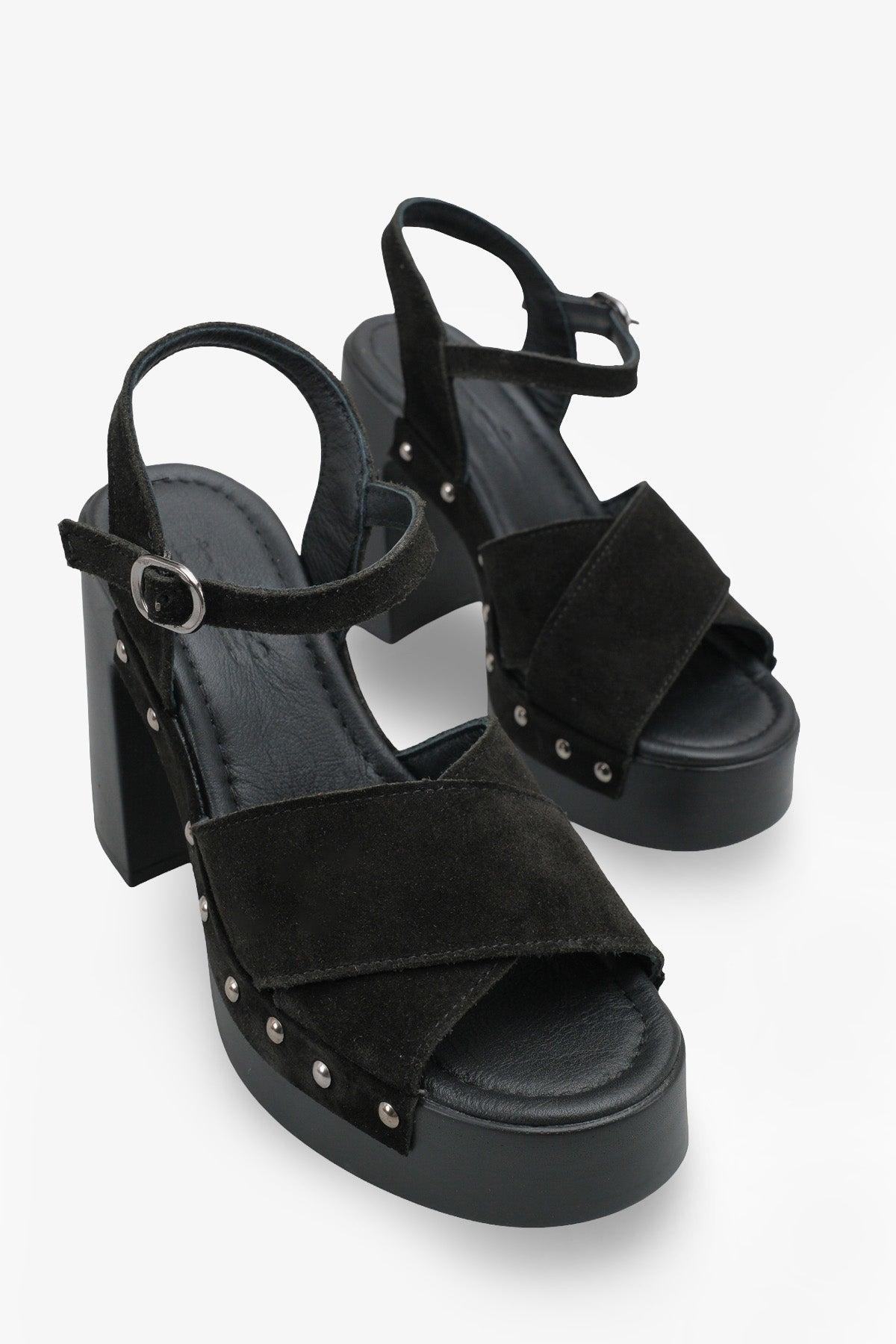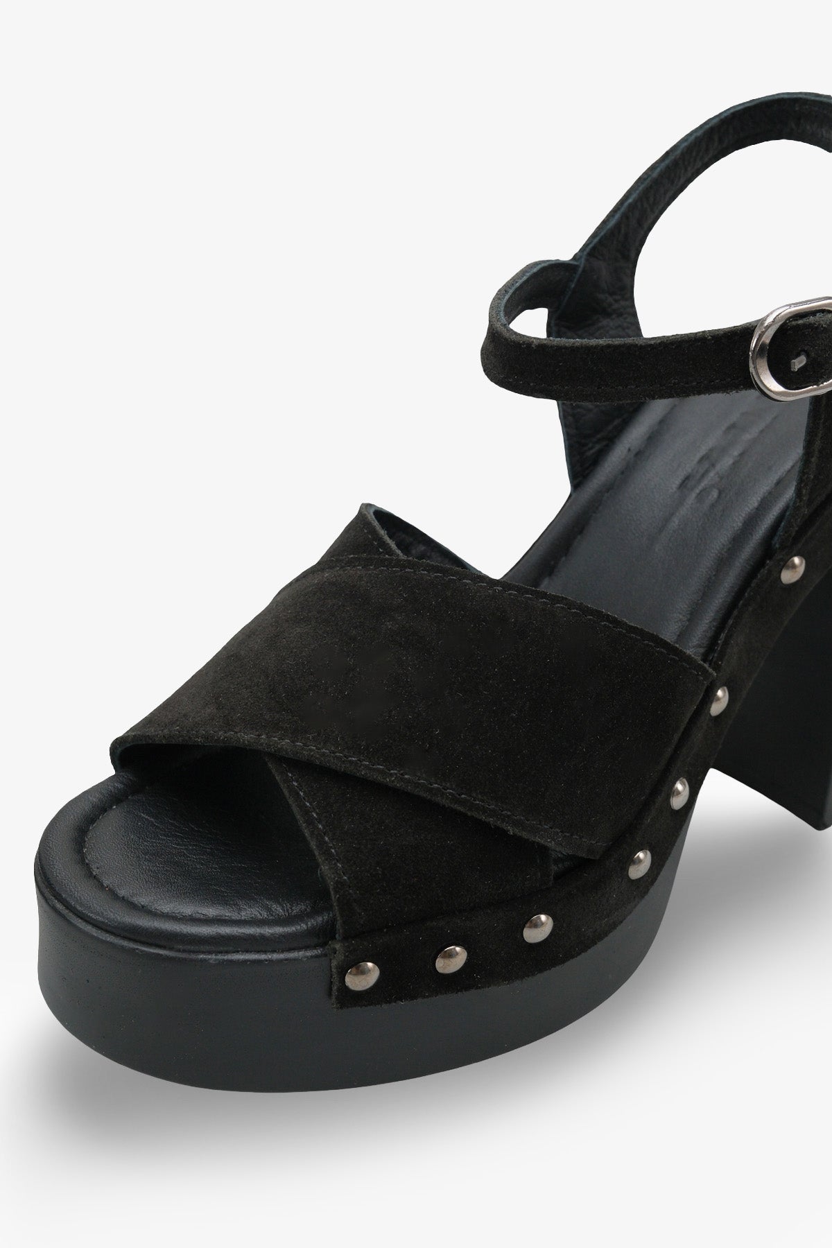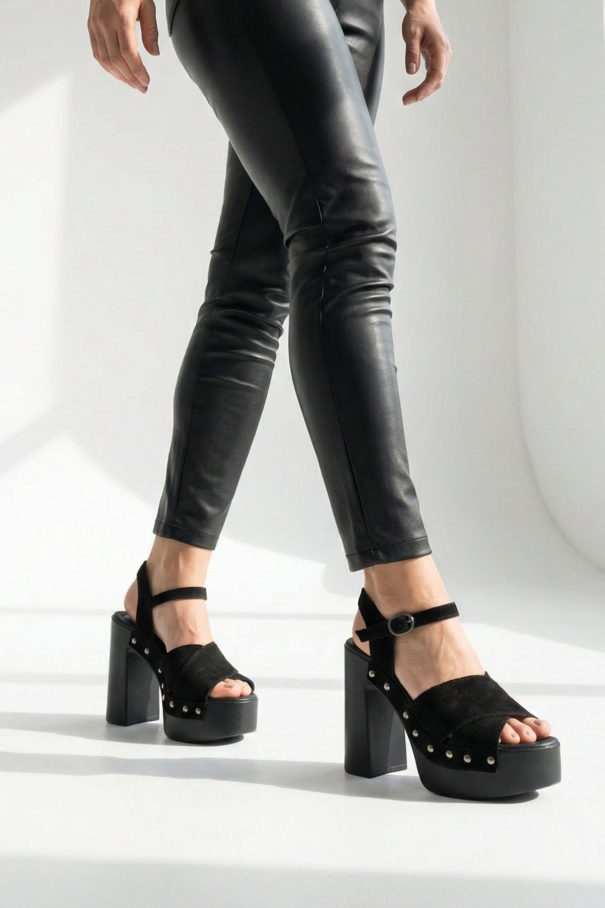 Darian Kadın Hakiki Deri Topuklu Sandalet - Siyah Süet