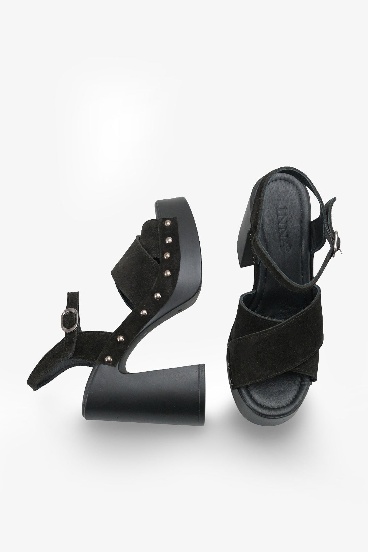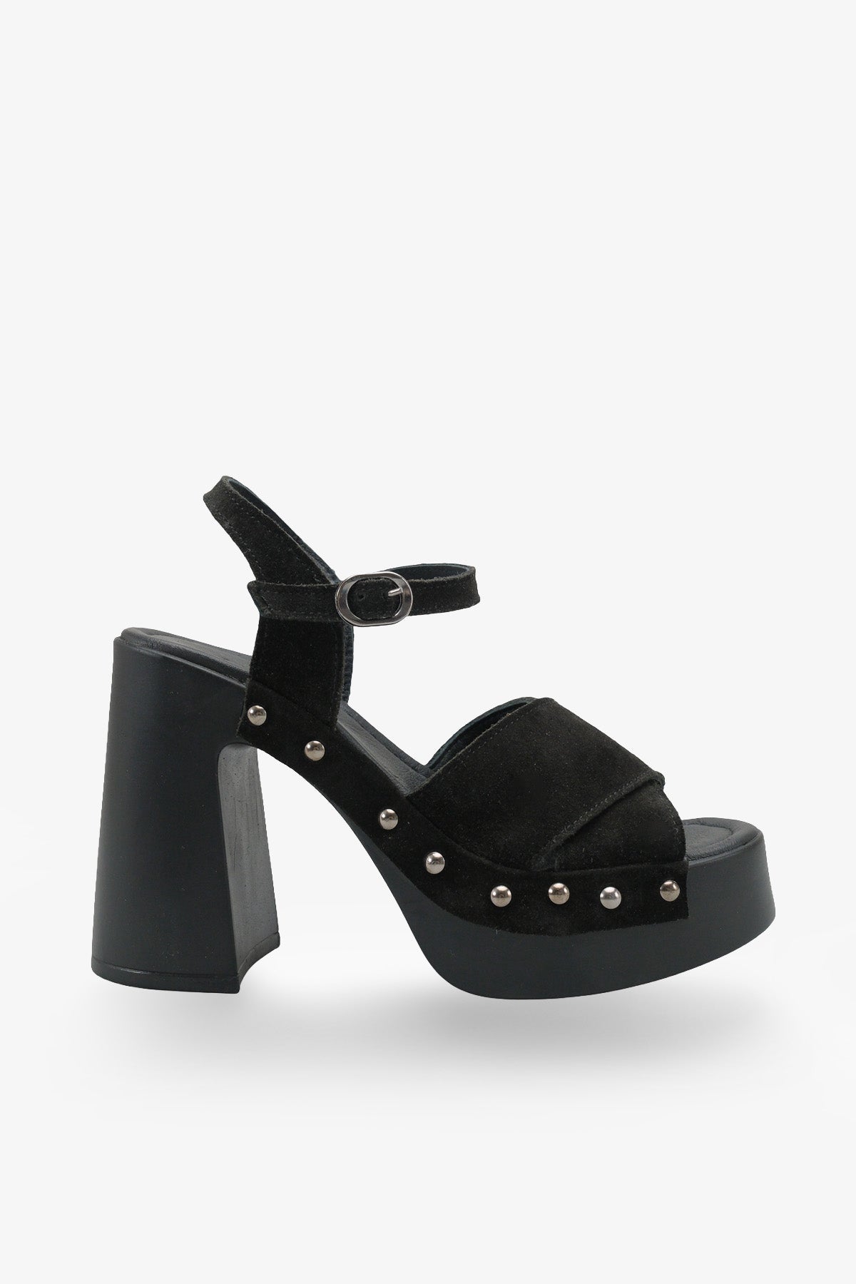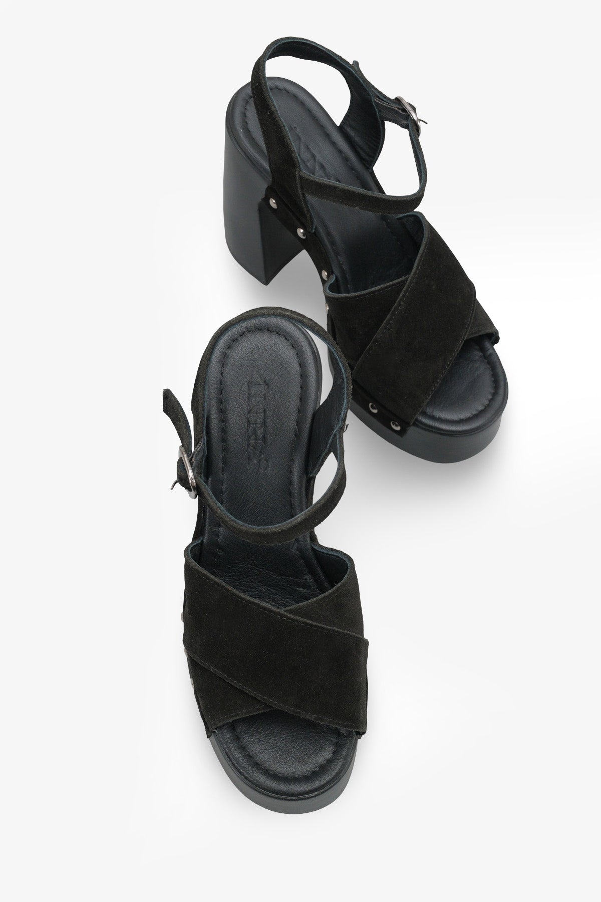 Darian Kadın Hakiki Deri Topuklu Sandalet - Siyah Süet