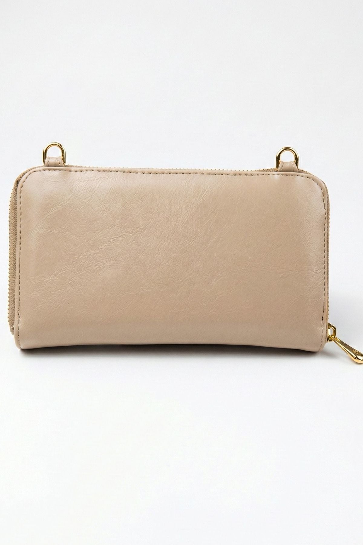 Yüksek kaliteli suni deri materyalden üretilen Delyn çanta cüzdan, vintage görünümlü dokusu ve asil taş rengi tonuyla stilinize sofistike bir hava katar.