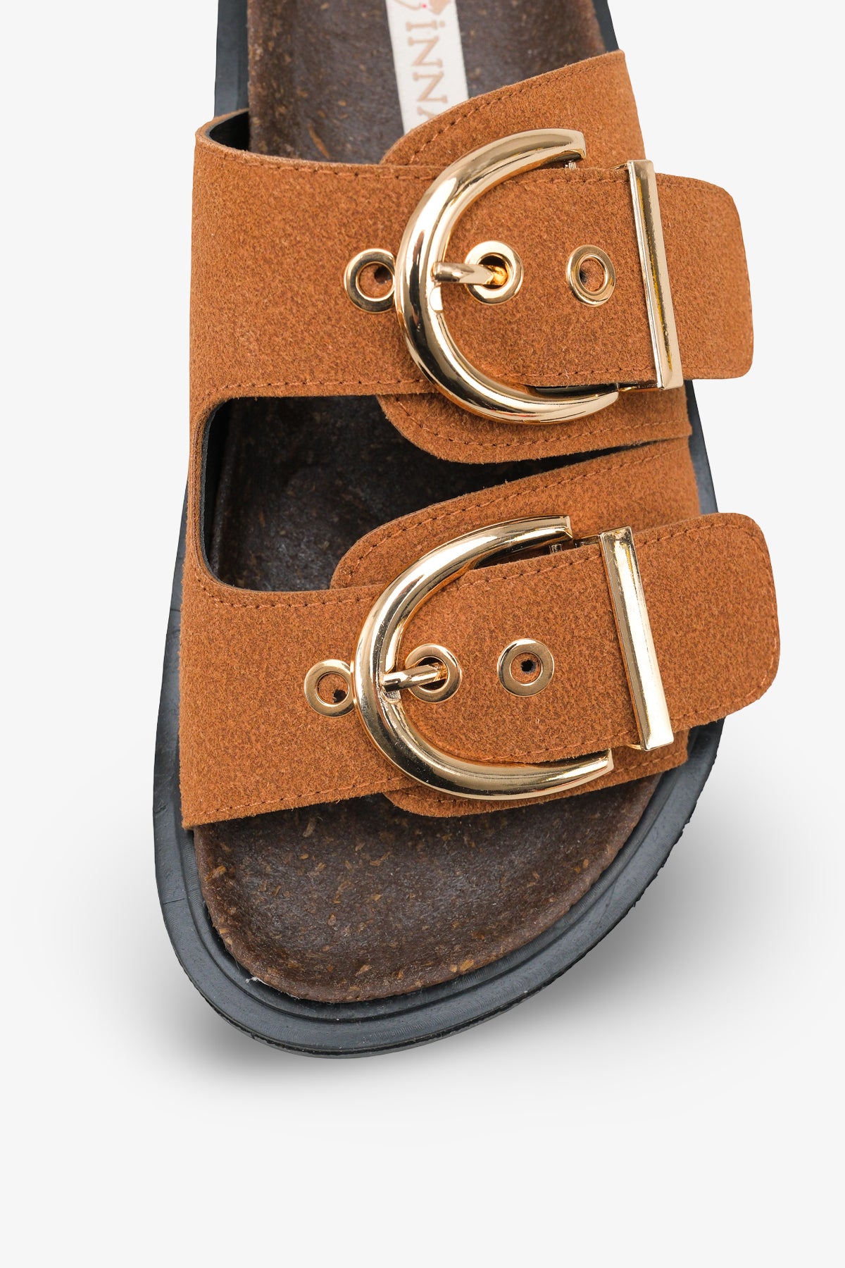 Üzerinde yer alan dore (gold) renkli ayarlanabilir tokalı kemer detayları, terliği ayağınızın genişliğine göre kişiselleştirmenize olanak tanır.