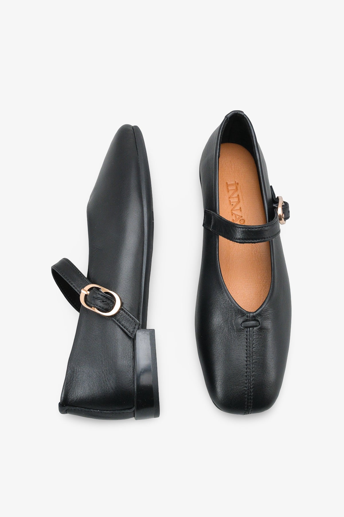 Siyah hakiki deri yüzeyi ve modern küt burun tasarımıyla öne çıkan Giela kadın babet, stilinize zamansız ve sofistike bir dokunuş katar.