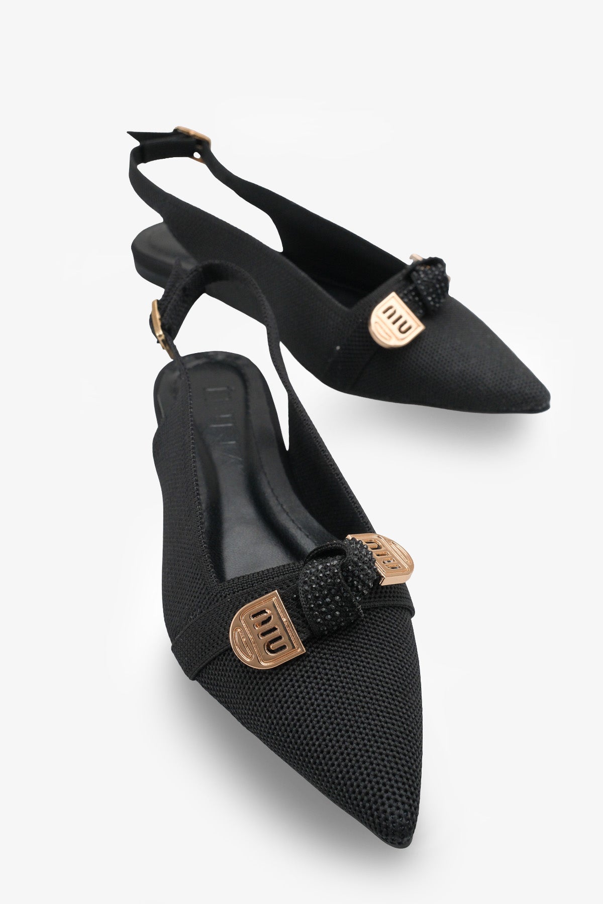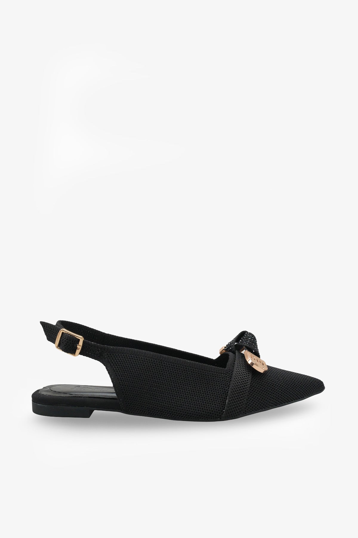 Greta Kadın Taşlı Triko Babet - Siyah