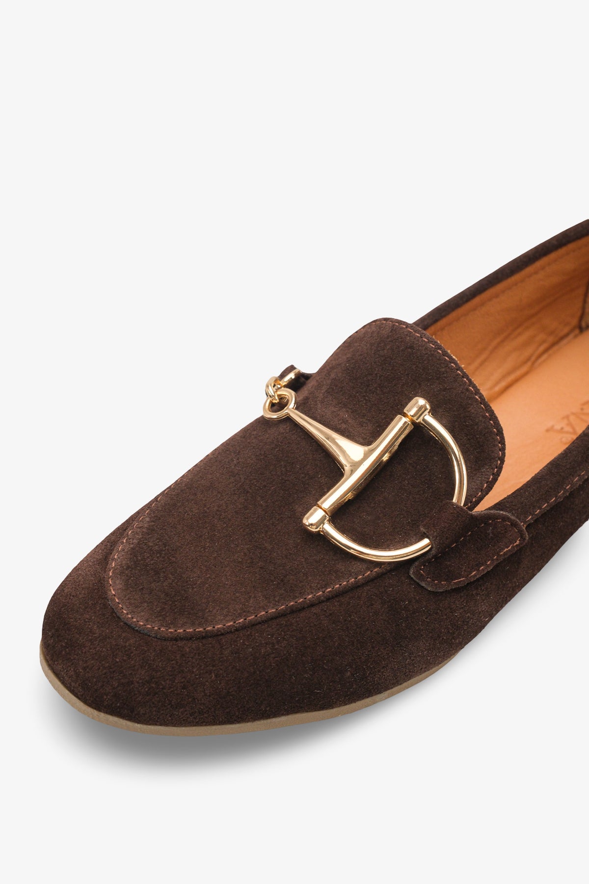 Üst kısmında yer alan karakteristik gold (altın) renkli metal aksesuar detayı, klasik loafer silüetine lüks, iddialı ve zamansız bir hareket kazandırır.