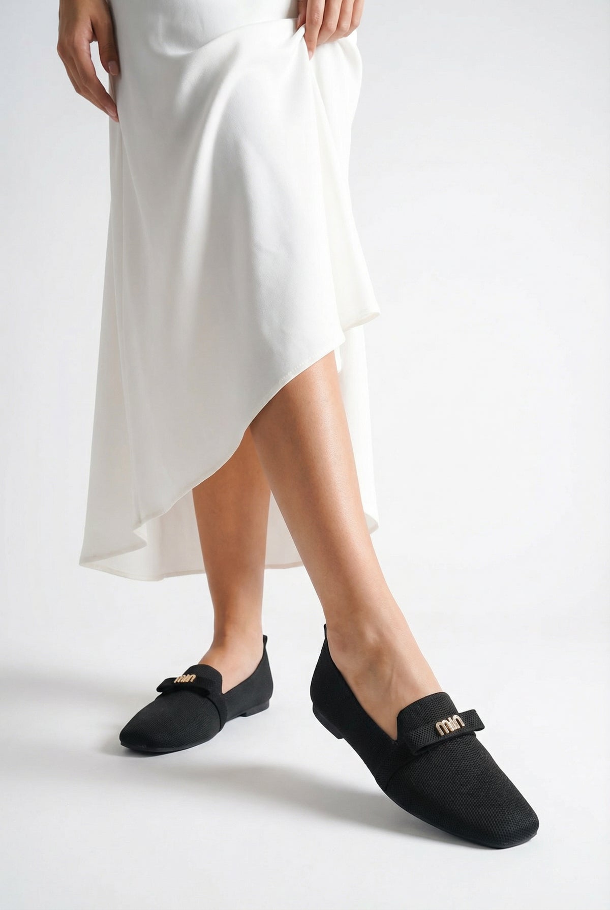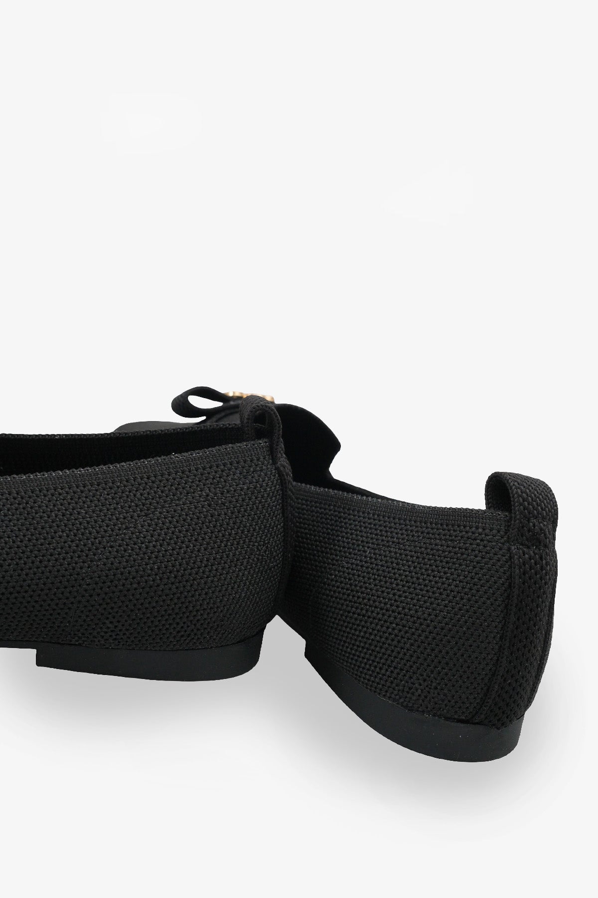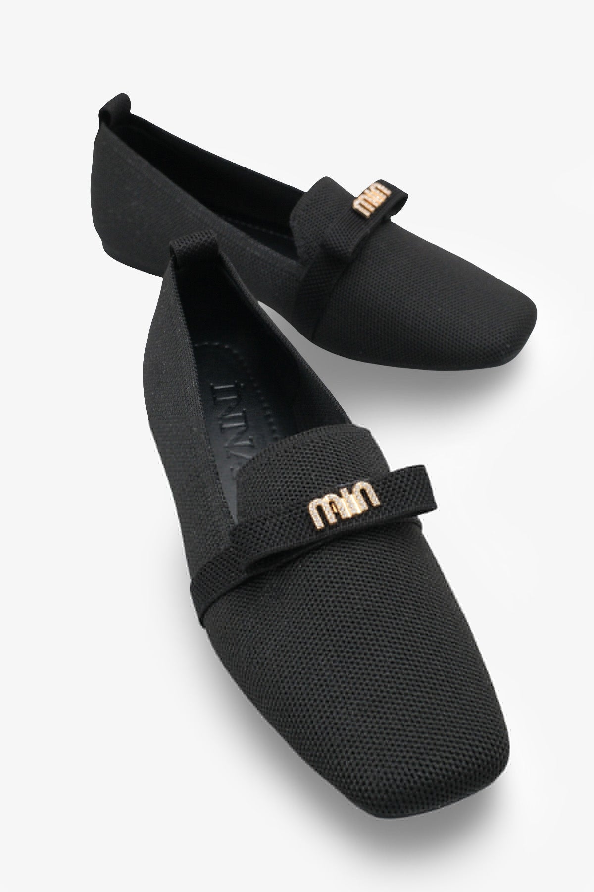 Modern kare burun tasarımı ve şık metal aksesuar detayıyla zenginleştirilen bu siyah triko babet, stilinize sofistike bir dokunuş katar.