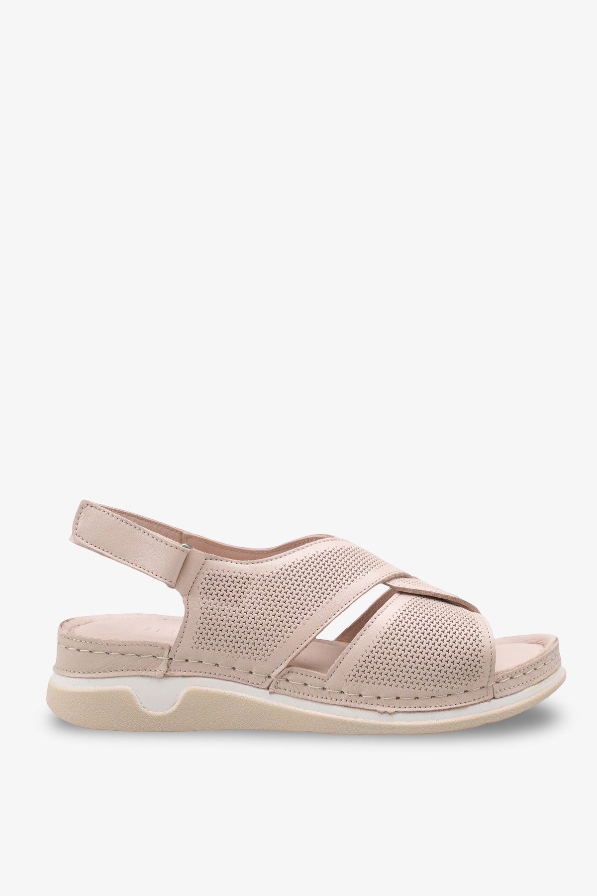 Ayağı nazikçe saran geniş çapraz bant tasarımı ve ayarlanabilir cırtlı arka kayışı, kişiye özel tam uyum ve pratik bir kullanım sağlar.
