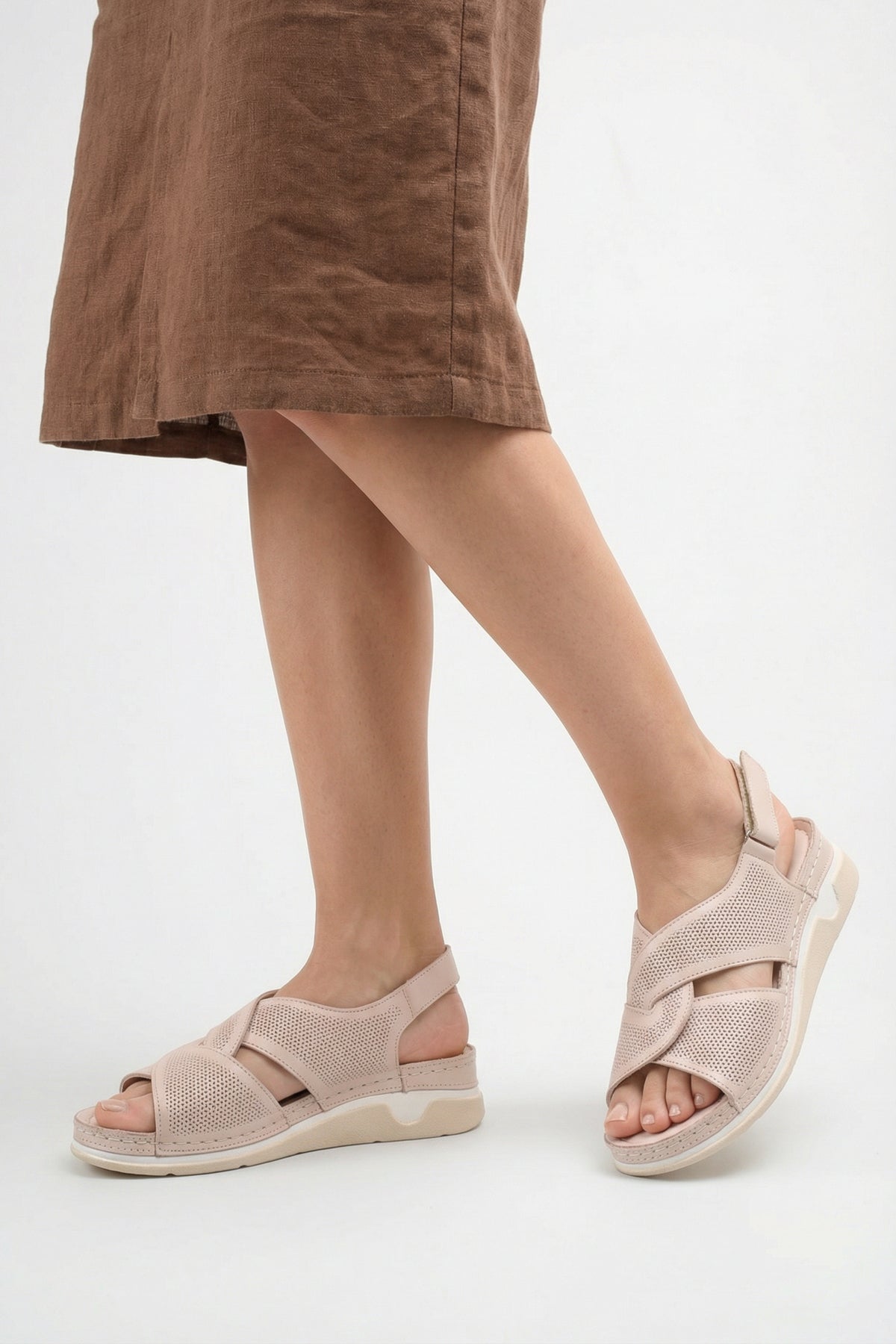 Ayak anatomisini destekleyen hafif yükseltilmiş comfort taban yapısı, gün boyu süren yürüyüşlerde maksimum rahatlık ve denge sunar.
