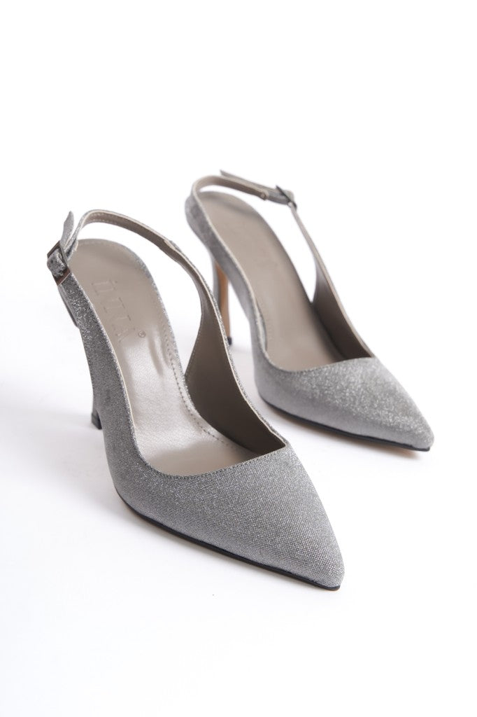 Ketya Kadın Abiye Taşlı Topuklu Ayakkabı - Platin Sim