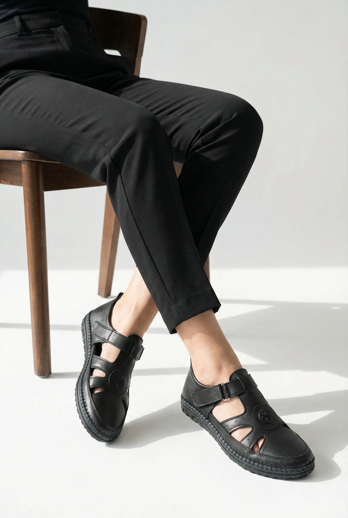 Nefes alabilen pencereli tasarımı ve siyah hakiki deri yüzeyi ile Kmala günlük ayakkabı, klasik şıklığı ferah bir kullanım deneyimiyle buluşturur.
