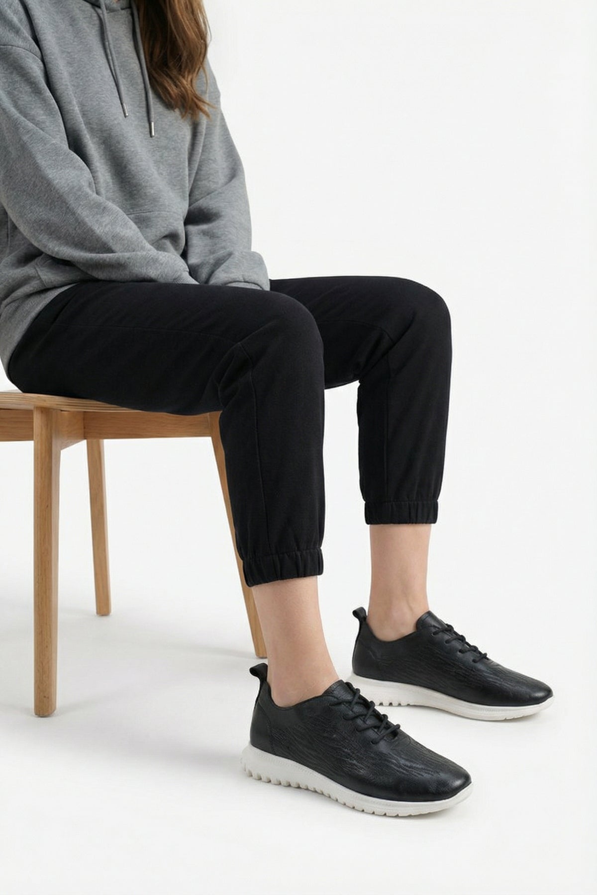 Maserda Kadın Hakiki Deri Sneaker Spor Ayakkabı - Siyah