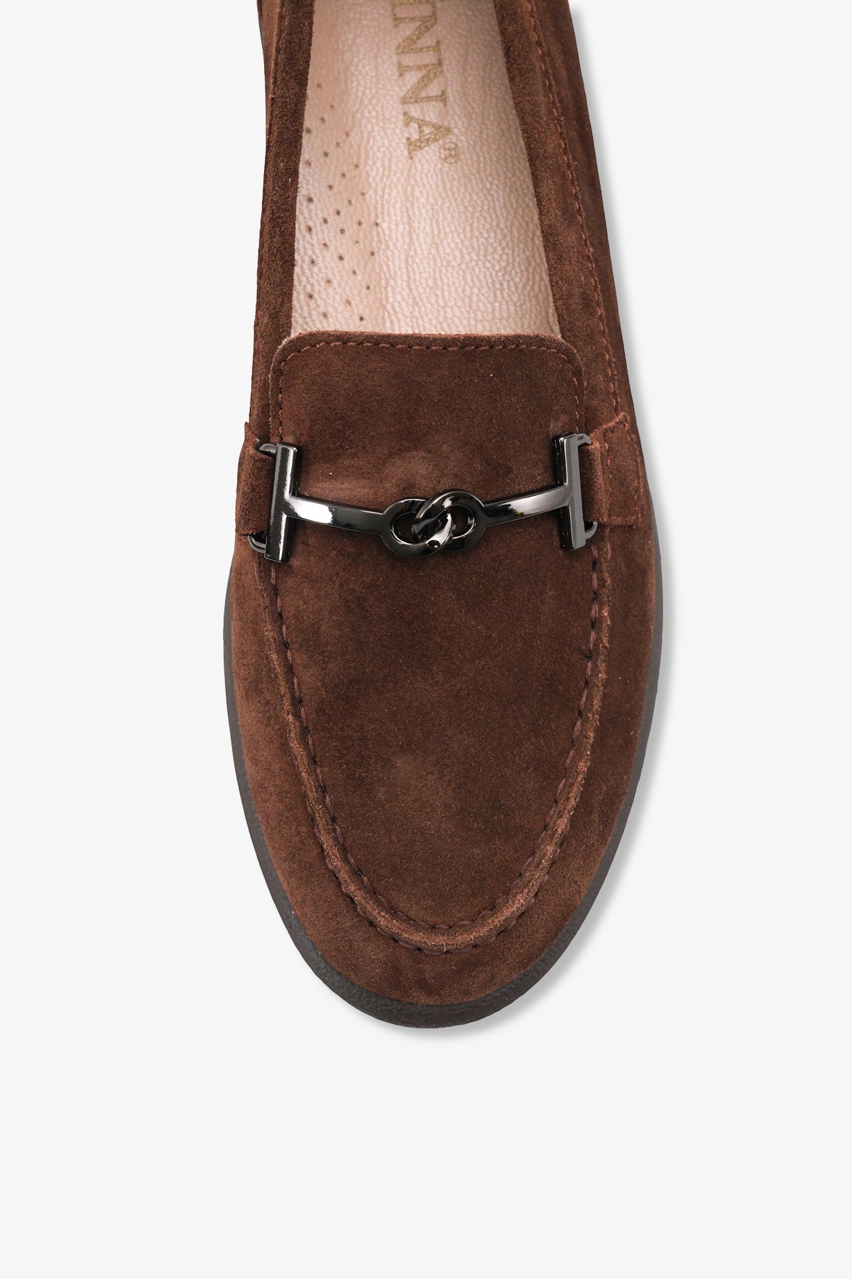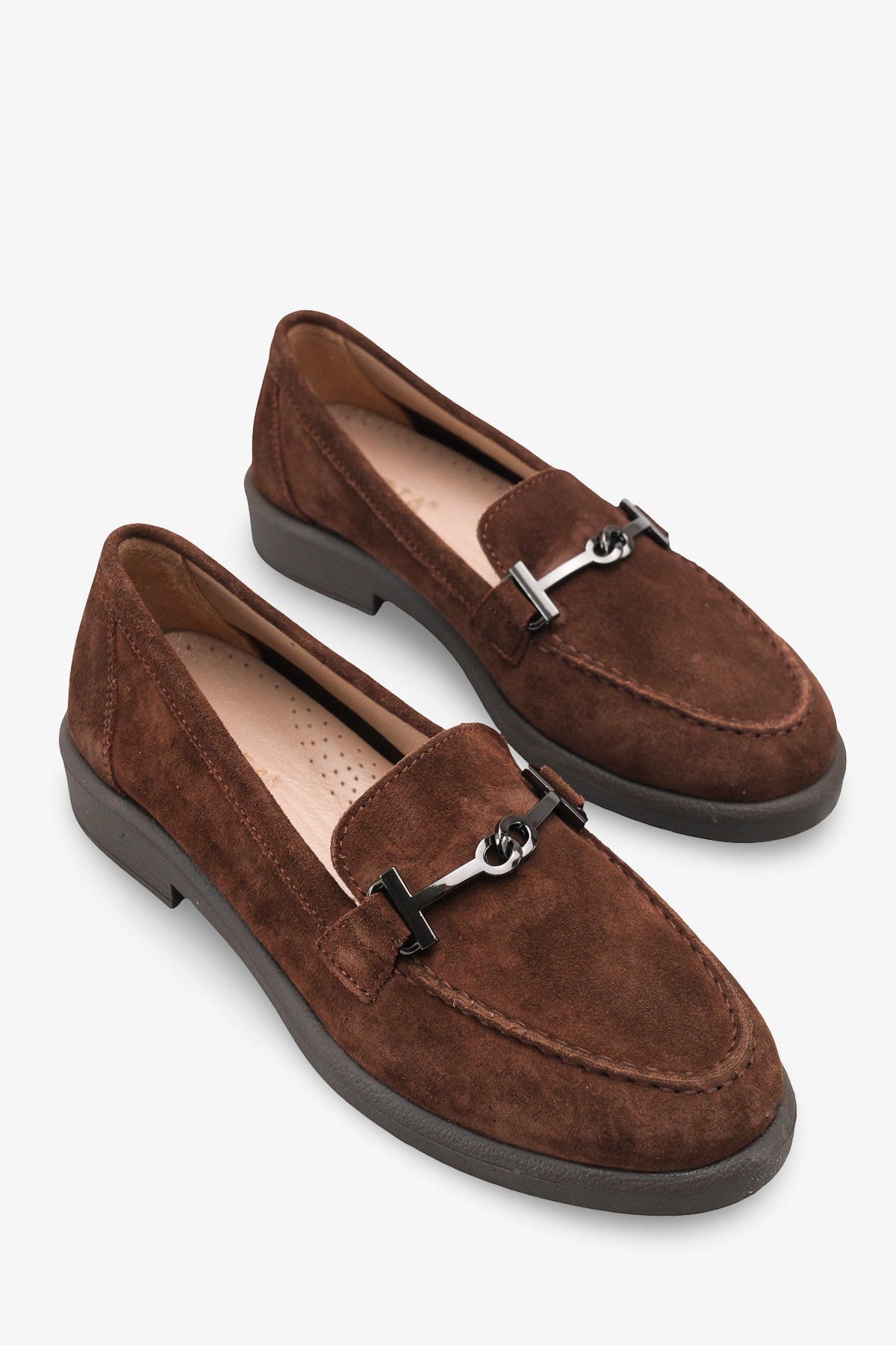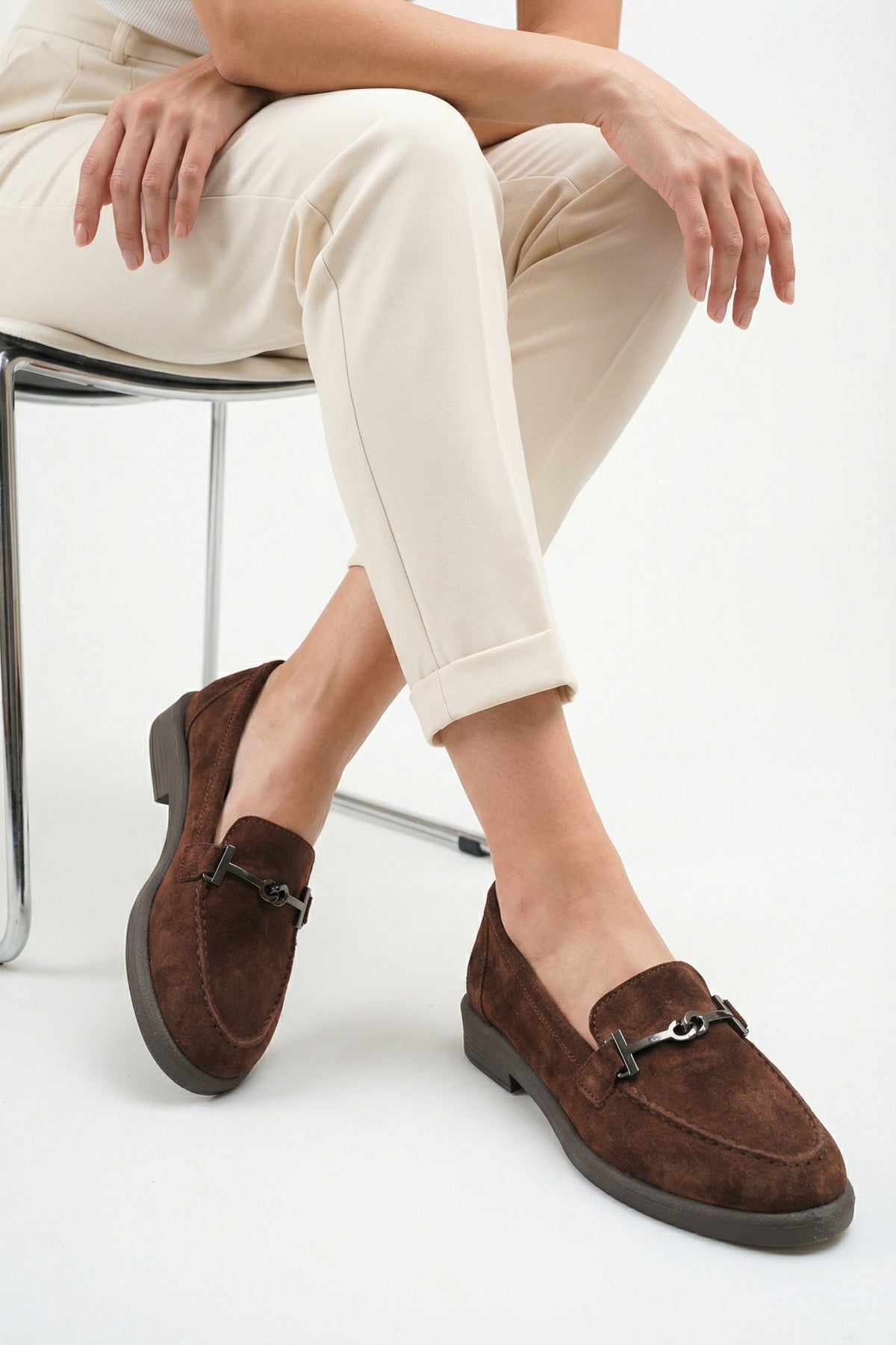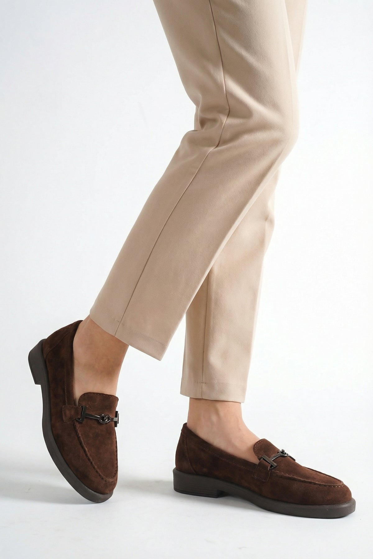 Yumuşak dokulu hakiki deri süet materyali ve zarif kahve tonuyla tasarlanan Meart kadın günlük ayakkabı, klasik loafer stilini modern bir estetikle yorumlar.
