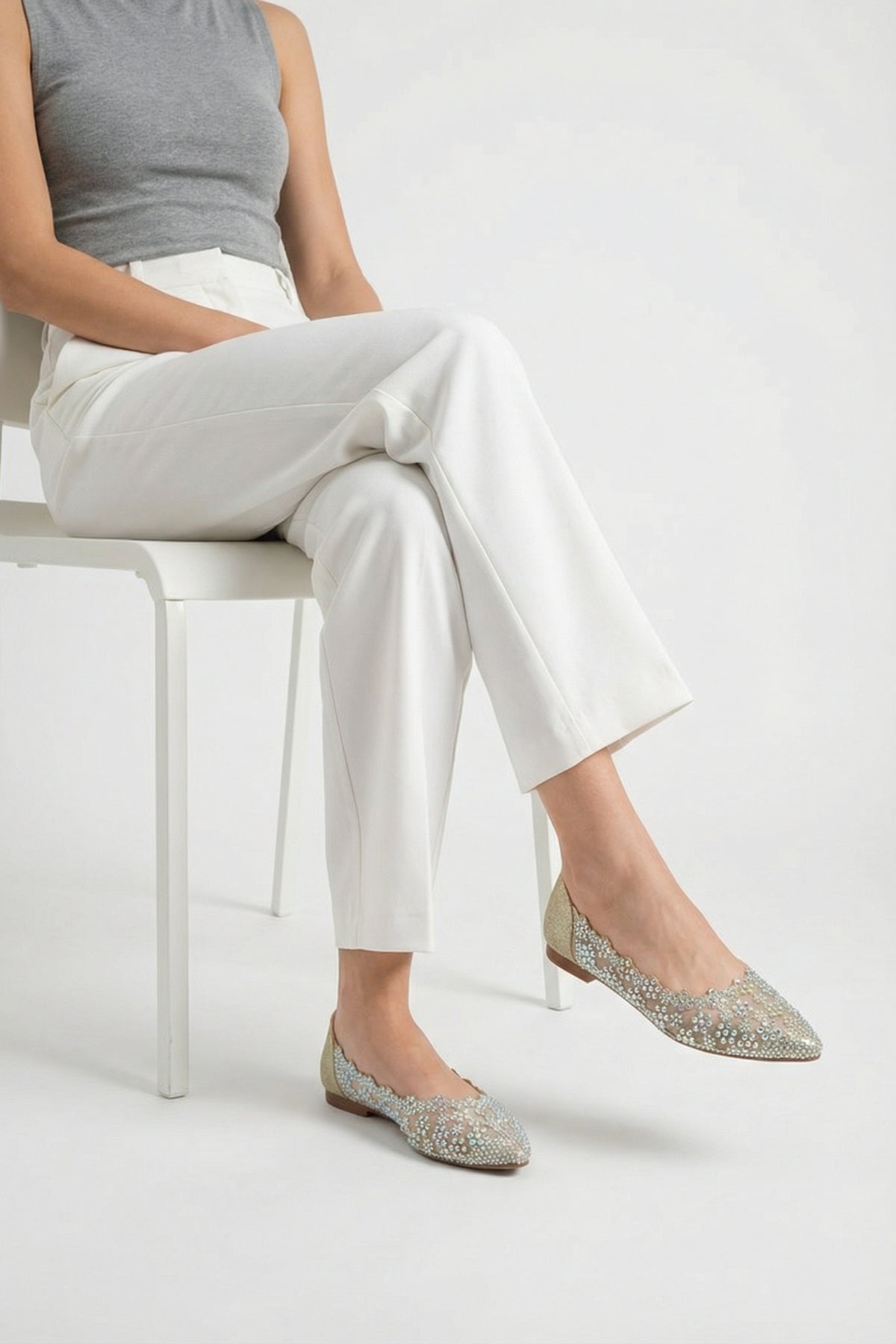 Zarif sivri burun formu ve ayak yapısını kibar gösteren dalgalı (scalloped) kenar kesimiyle, stilinize feminen ve romantik bir dokunuş kazandırır.