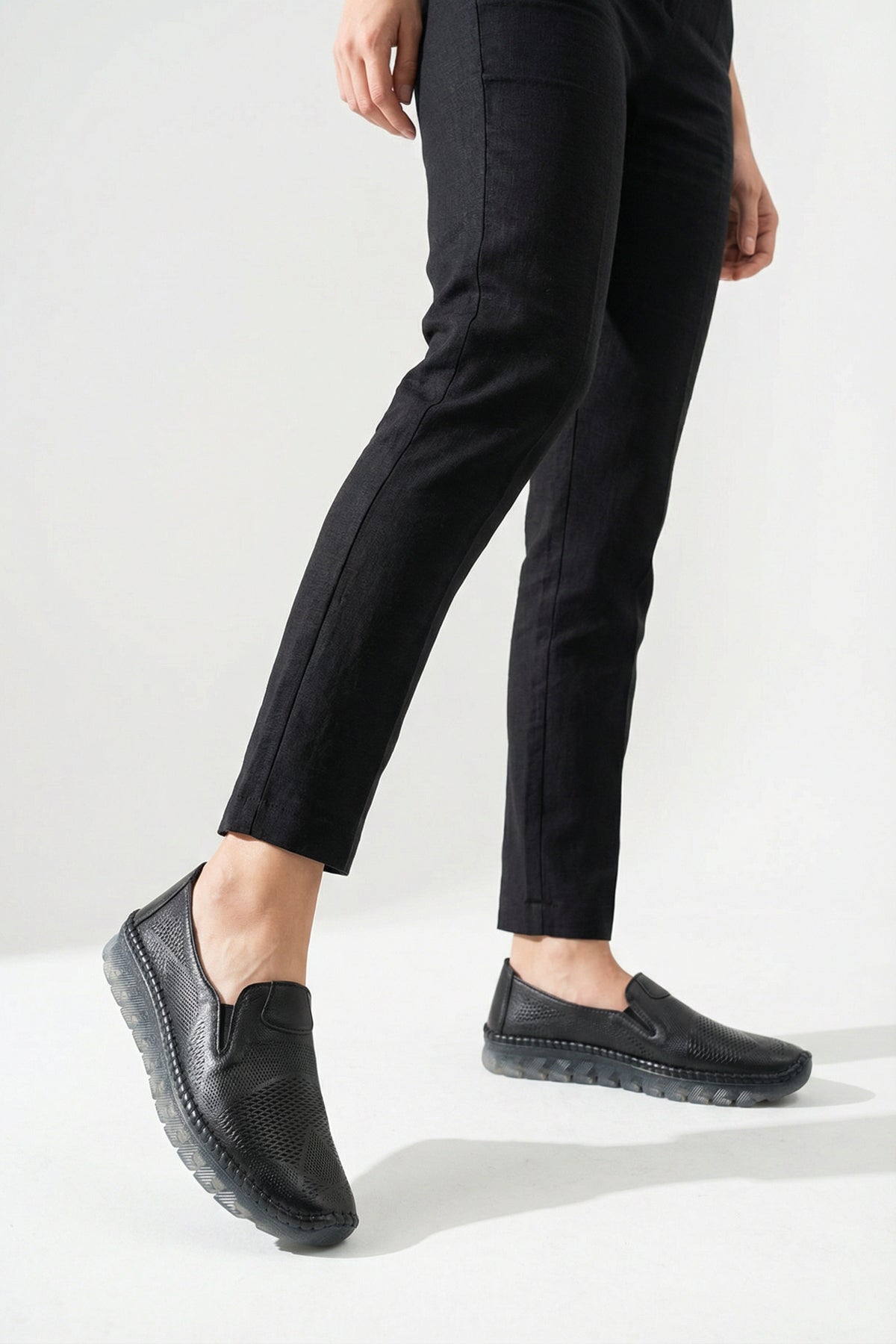 Hakiki deri materyali ve nefes alabilen lazer kesim dokusu sayesinde ayağınızın formuna uyum sağlayarak gün boyu ferah ve konforlu bir kullanım sunar.
