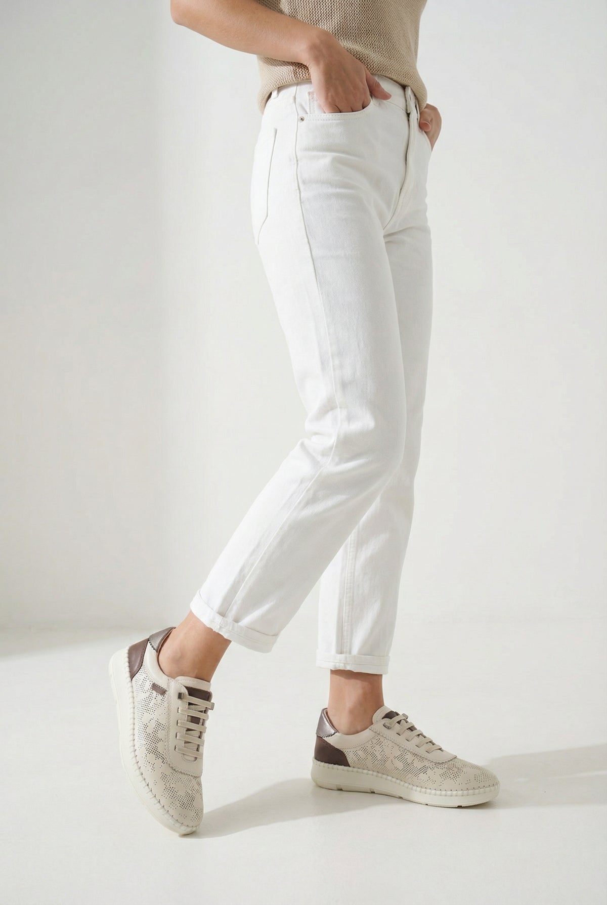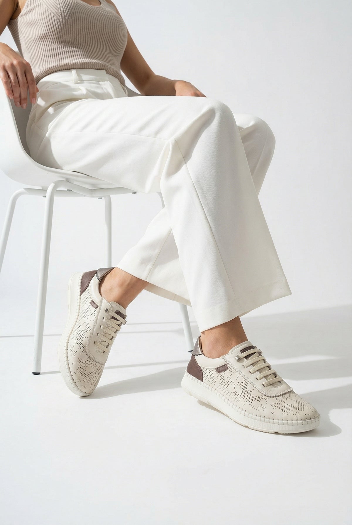 Zarif dikiş detayları ve metalik aksesuarlarla zenginleştirilen bu sneaker, spor şıklığı modern bir estetikle buluşturur.