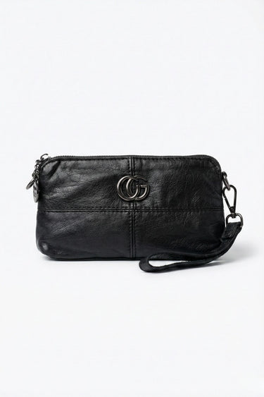 Doğal buruşuk deri görünümü ve asil siyah rengiyle tasarlanan Ollec kadın çanta, ön yüzeyindeki antrasit renkli metal logo detayıyla modern bir stil sunar.