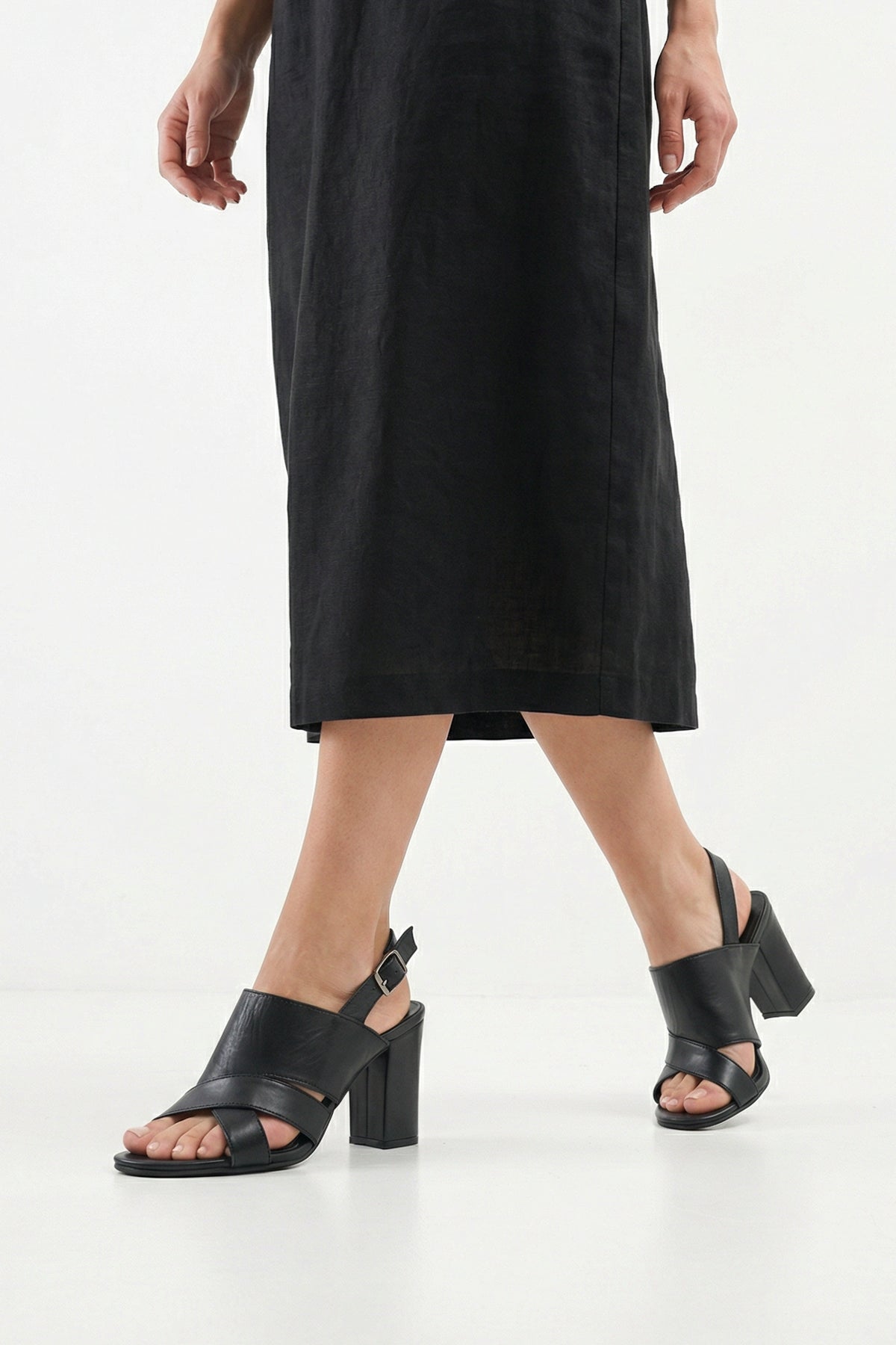 Ronica Kadın Hakiki Deri Topuklu Sandalet - Siyah