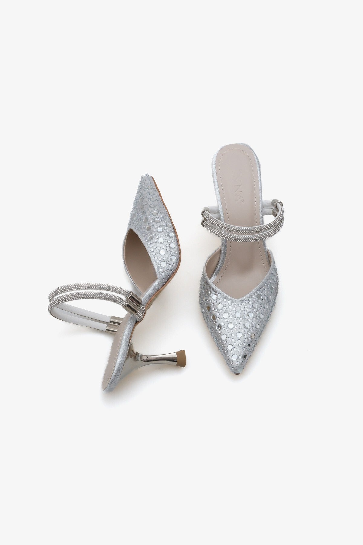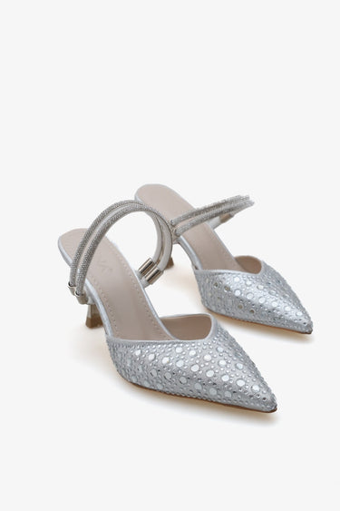 Rumane Kadın Abiye Taşlı Topuklu Ayakkabı - Gümüş Taş