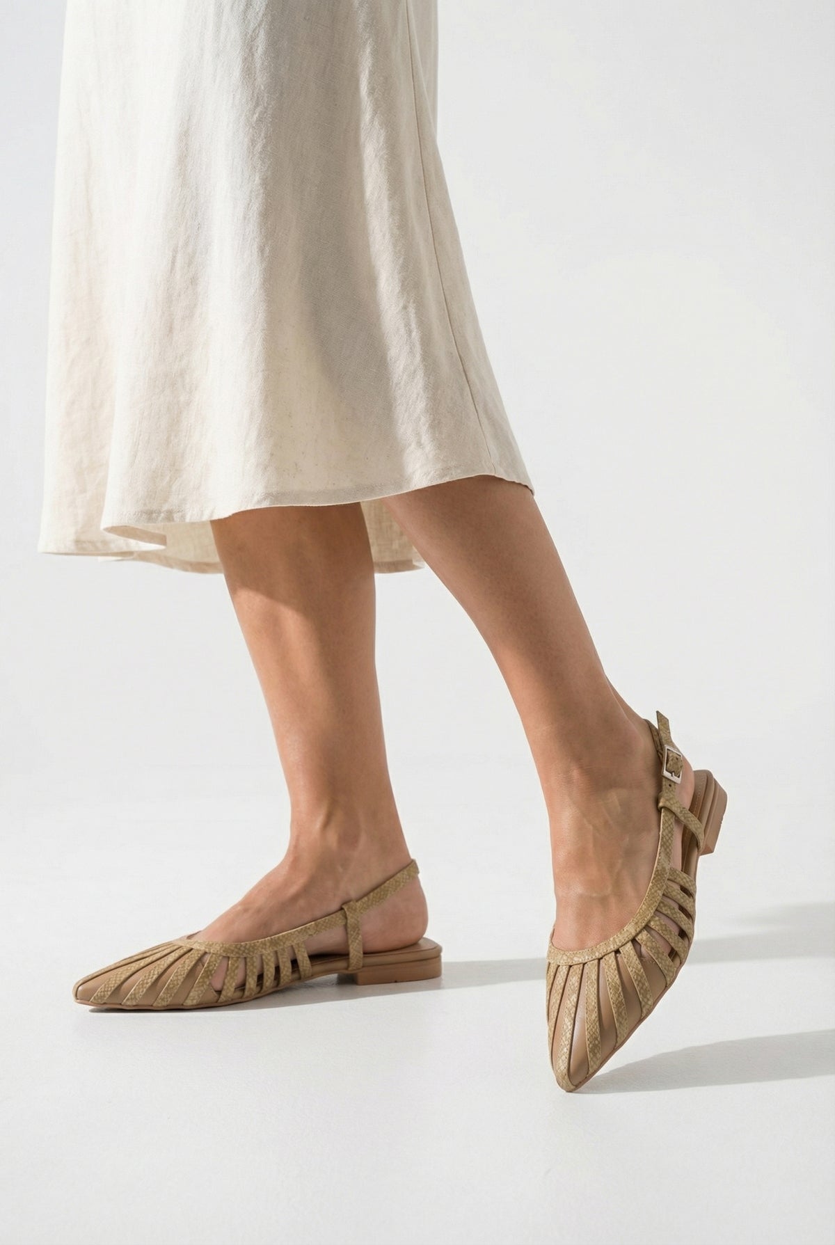 Modern kafes detaylı tasarımı ve zarif sivri burun yapısıyla dikkat çeken bu babet, günlük stilinize sofistike bir hava katar.