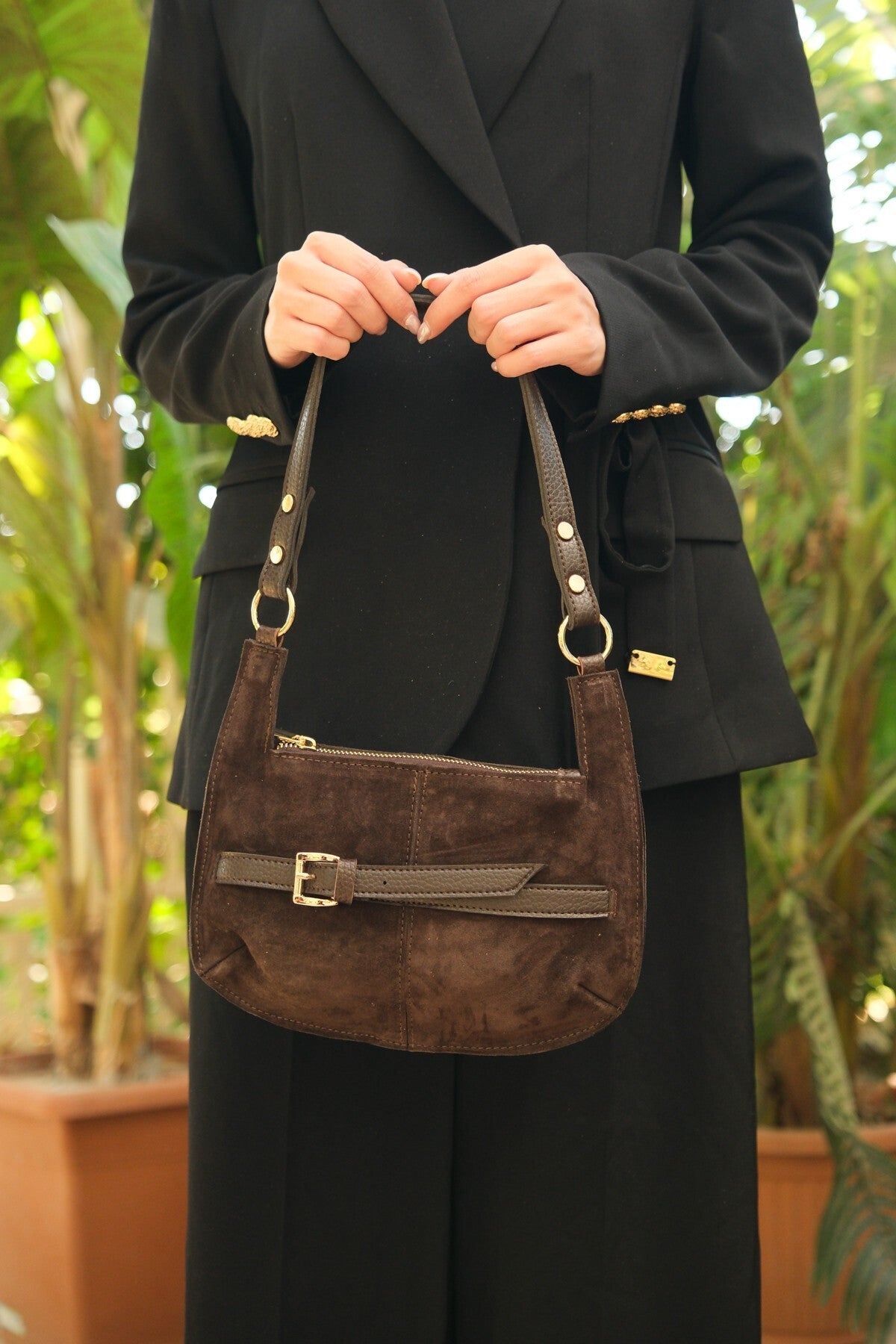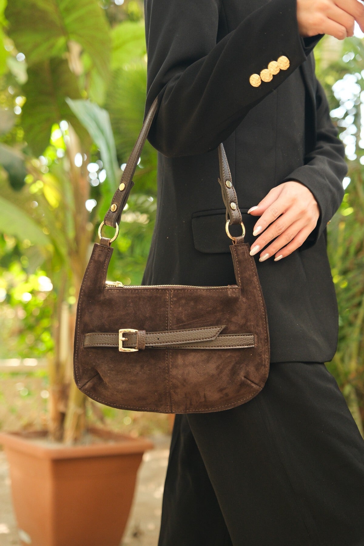 Toprak tonlarının sıcaklığını yansıtan bu parça, ceketli ofis kombinlerinden hafta sonu stillerine kadar her kıyafetle kusursuz bir uyum yakalar.