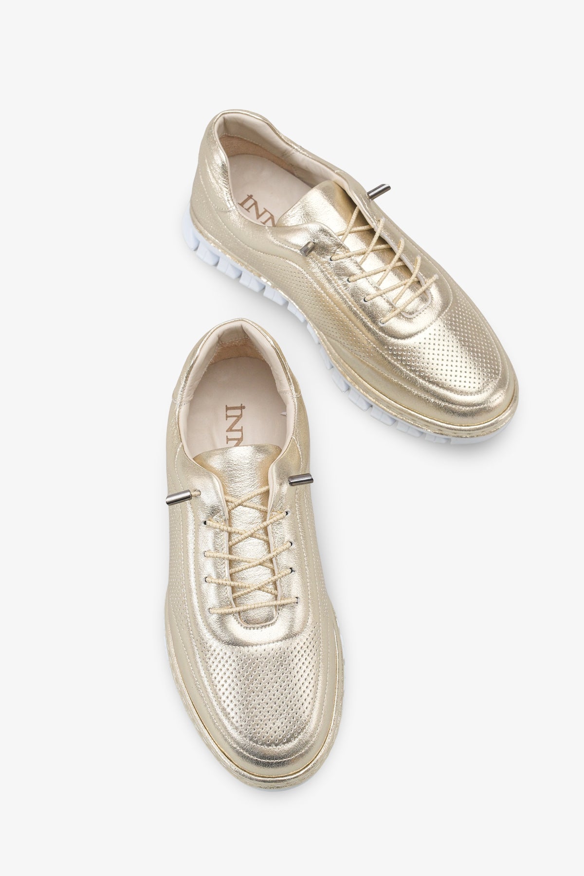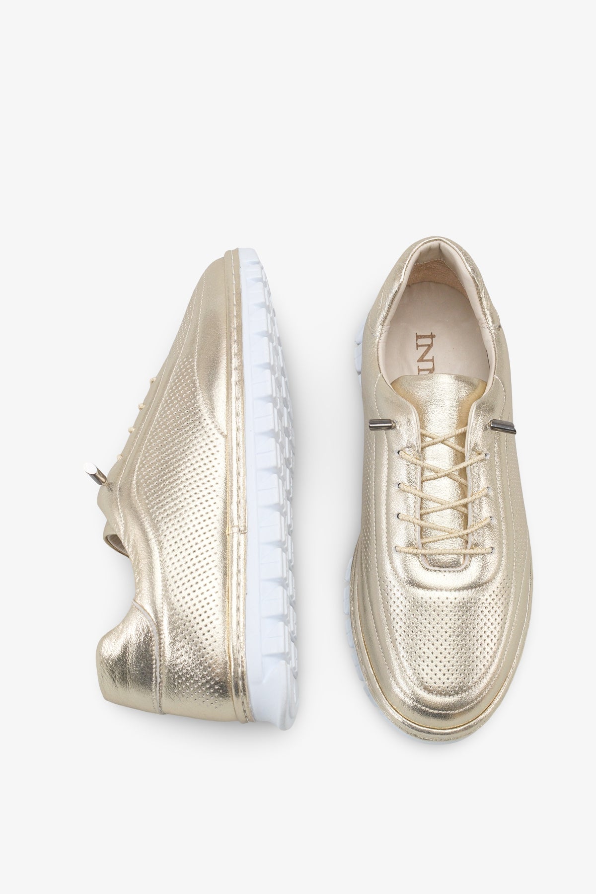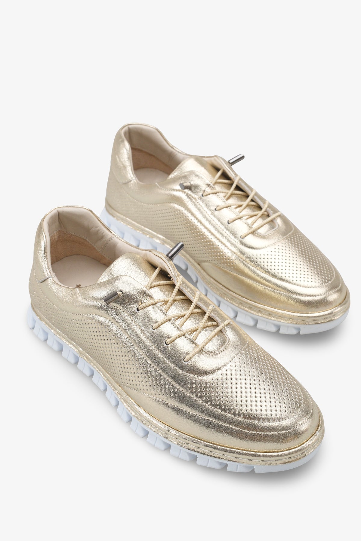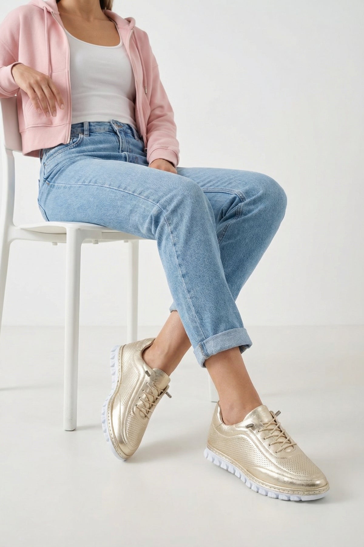 Smayn Kadın Hakiki Deri Sneaker Spor Ayakkabı - Altın