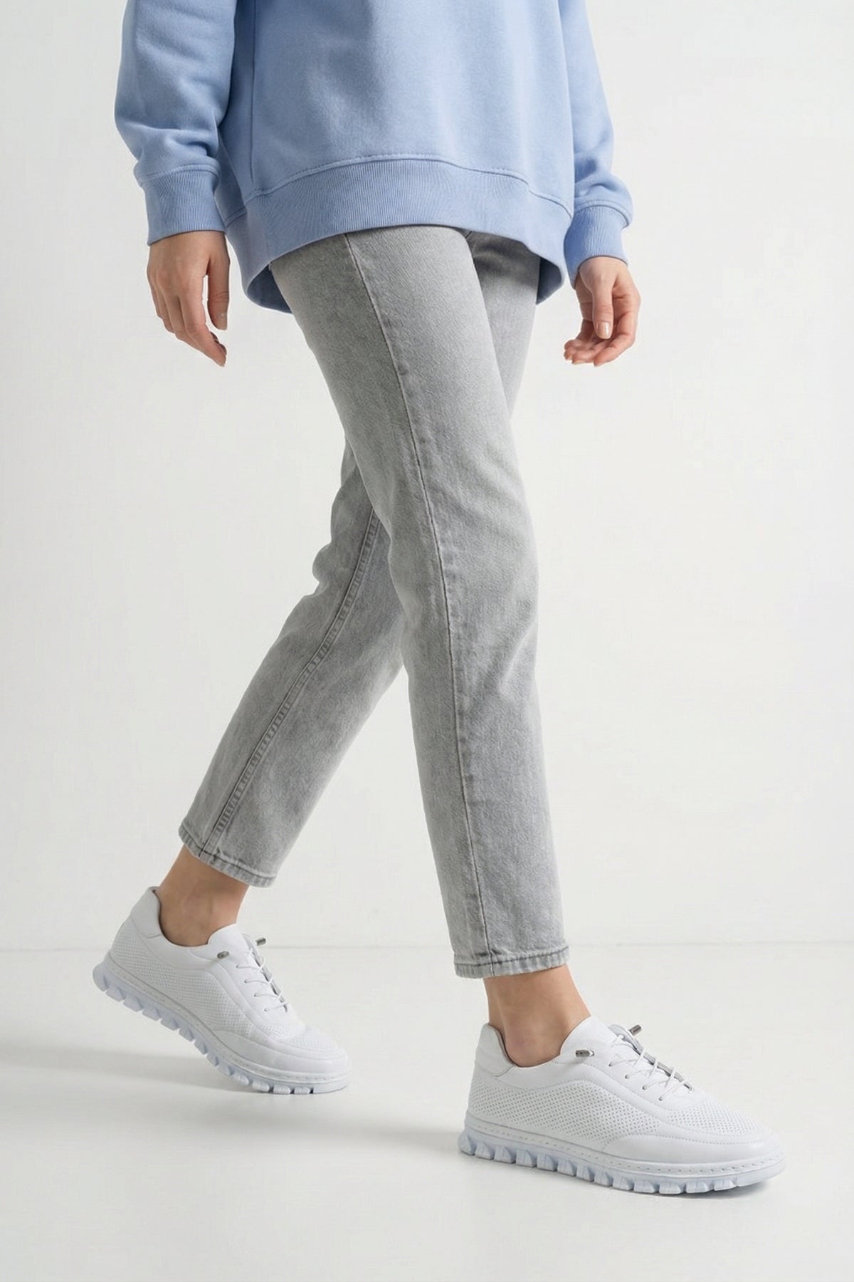 Ayak anatomisine kusursuz uyum sağlayan tam kalıp yapısıyla ayaklarınızı güvenle saran bu sneaker; taytlardan eşofman takımlarına, basic jeanlerden uçuş uçuş yazlık elbiselere kadar günlük stilinizin vazgeçilmez kurtarıcısı olur.