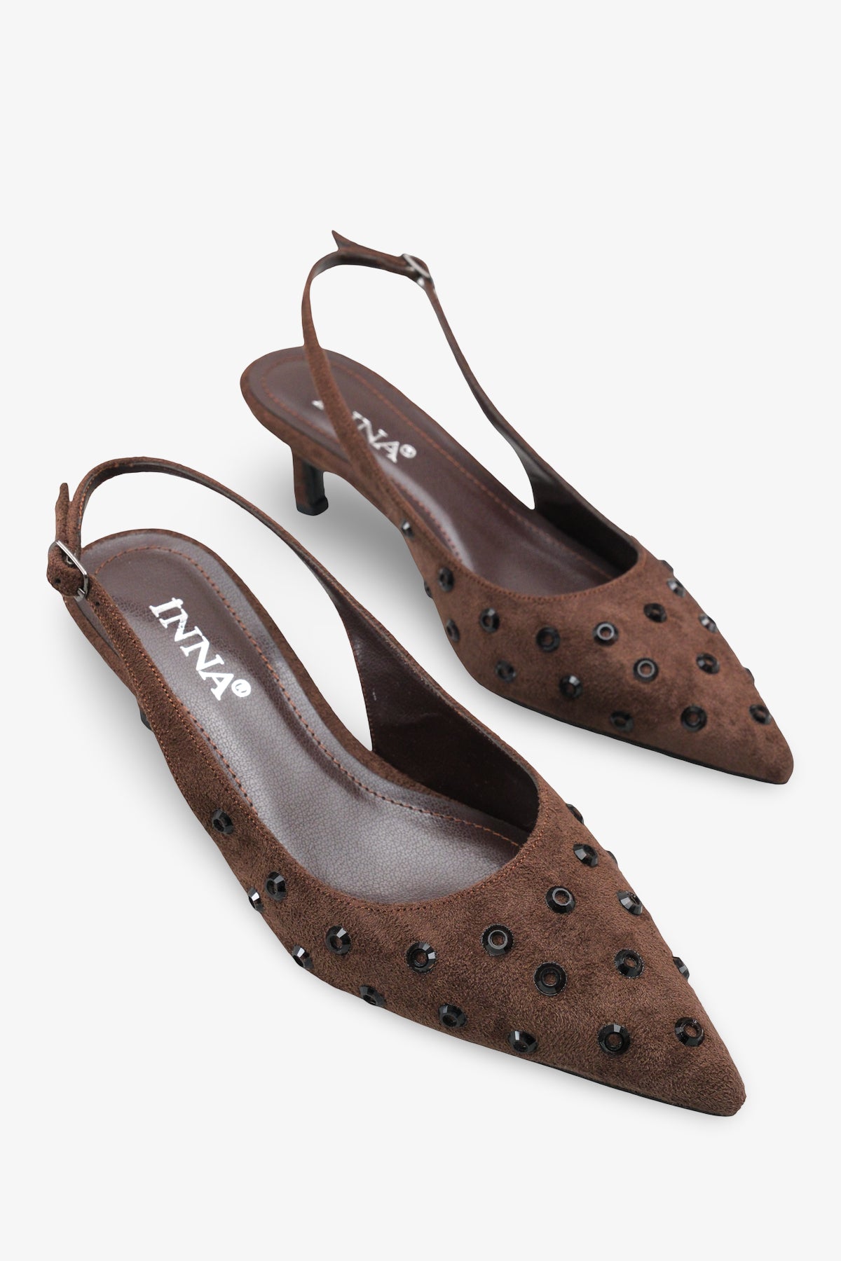 Kaliteli suni deri yüzey üzerine işlenen siyah taş detaylarıyla göz kamaştıran Smitty kadın topuklu ayakkabı, klasik şıklığı modern bir ışıltıyla buluşturur.