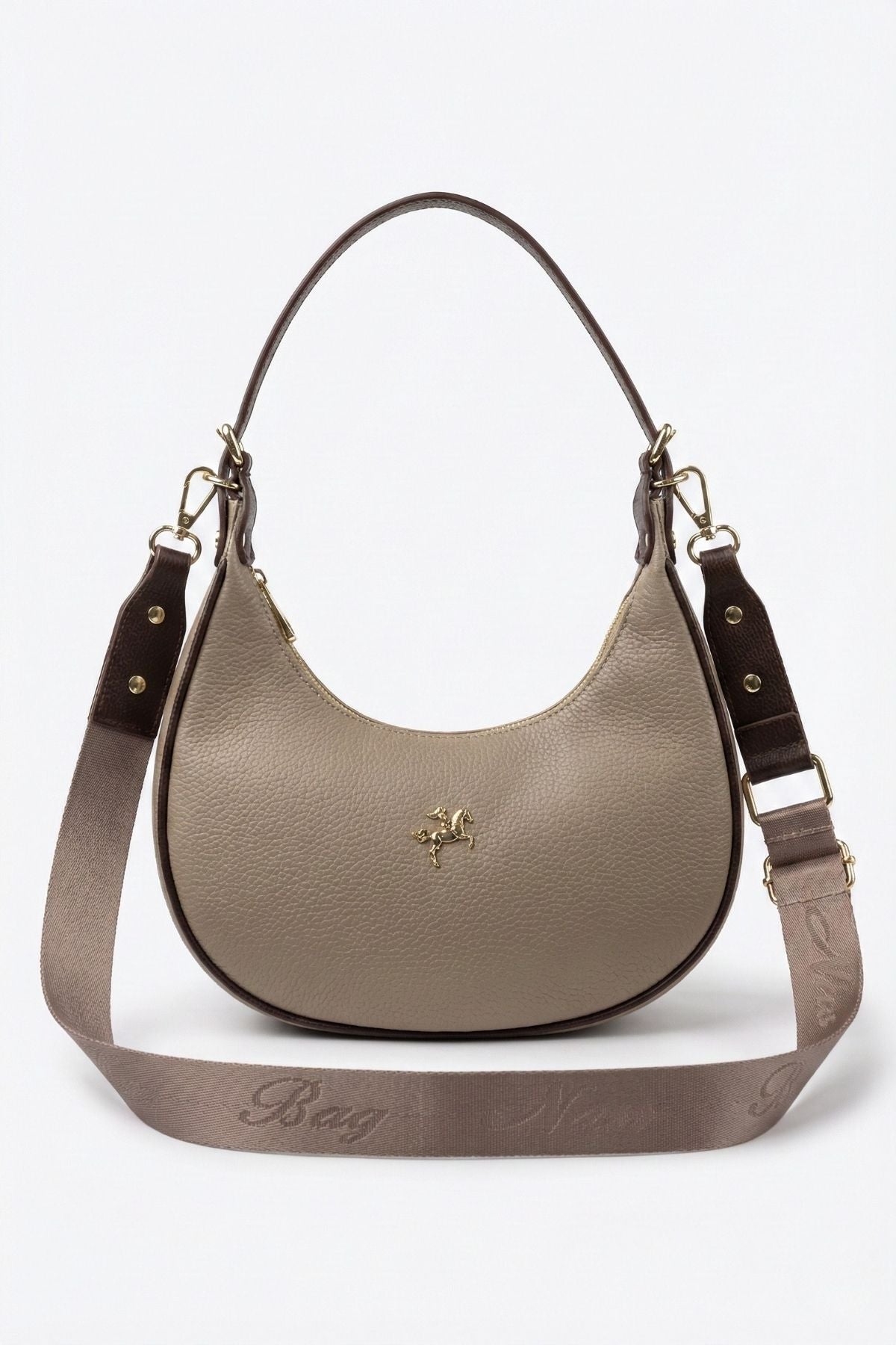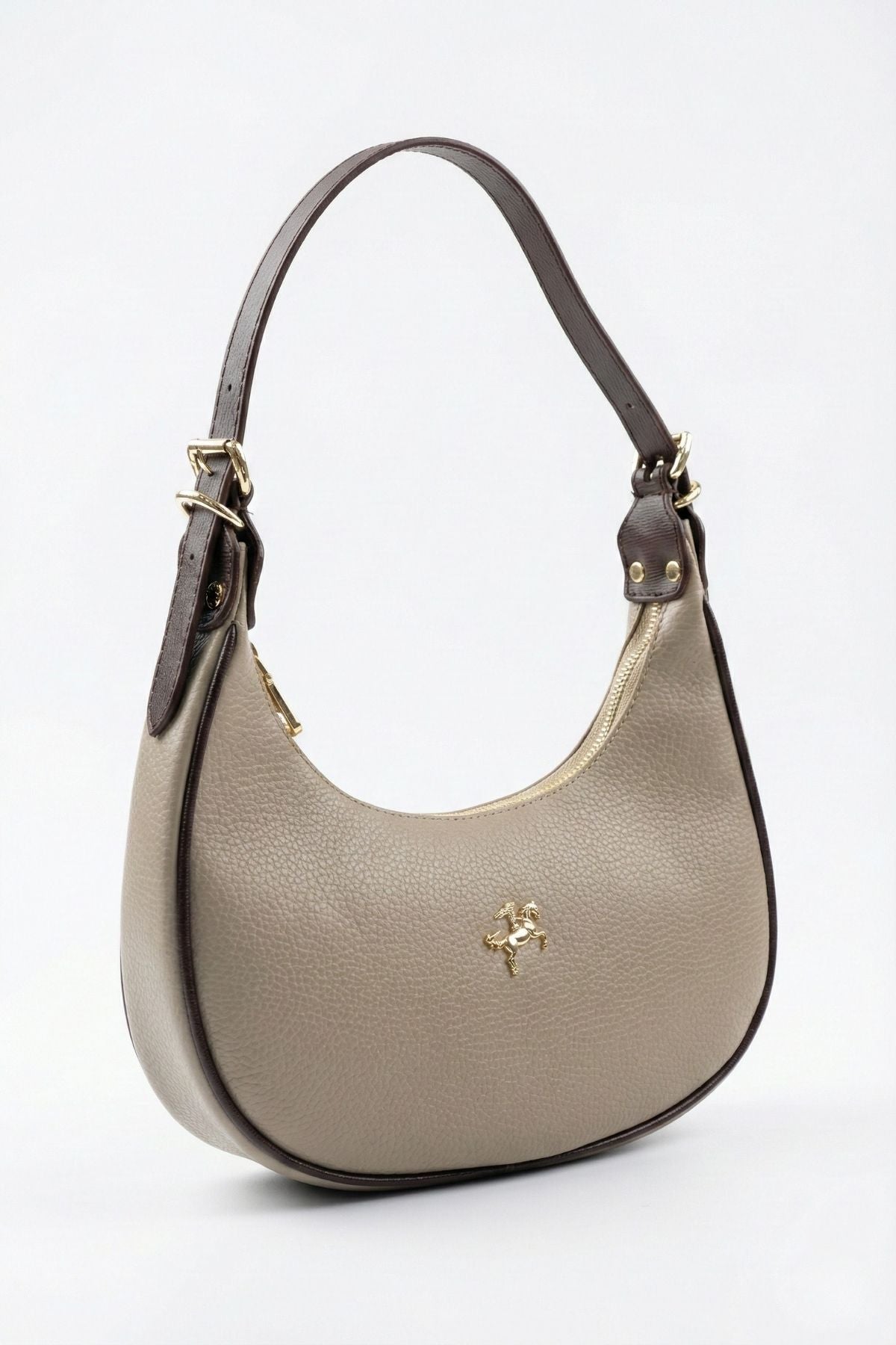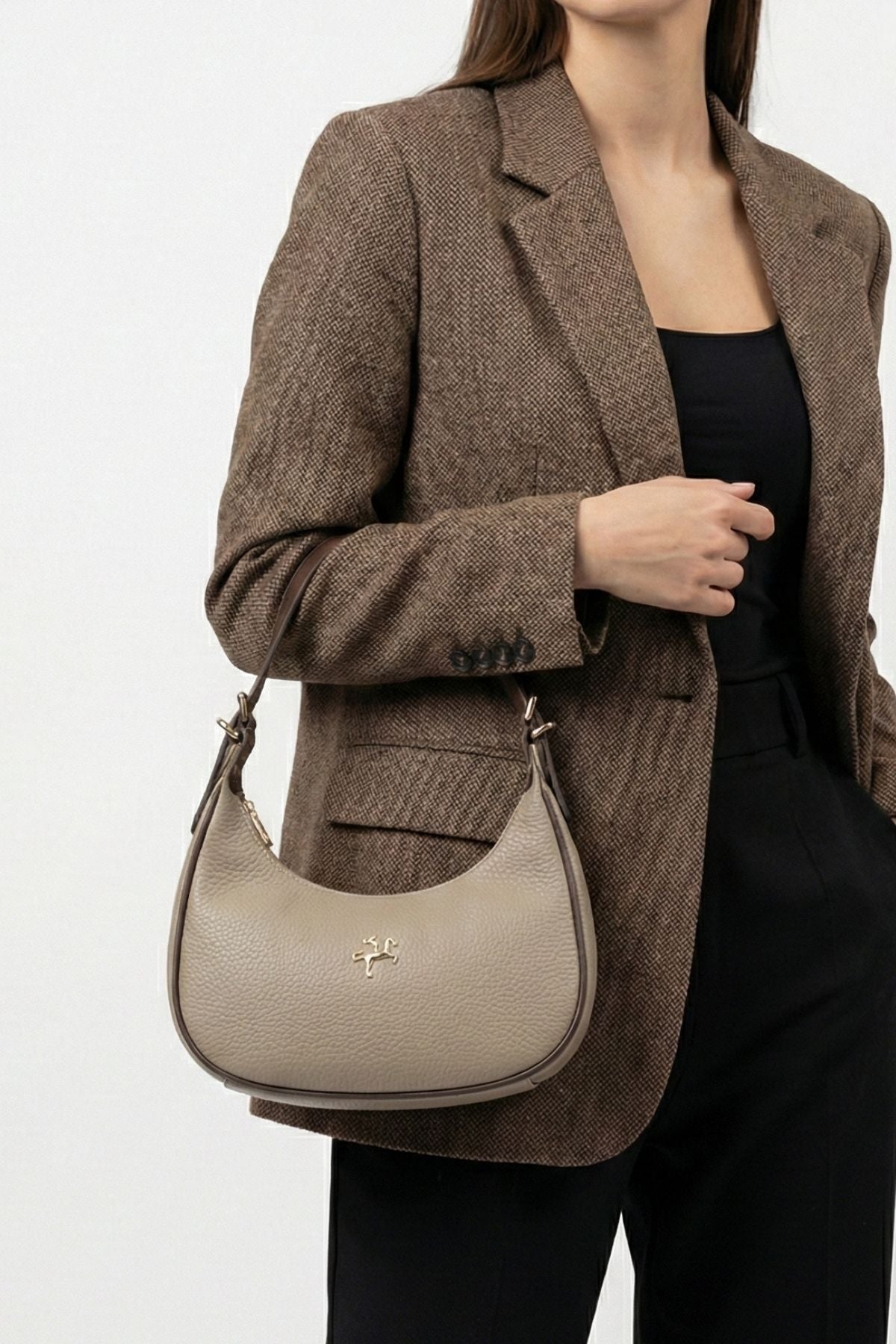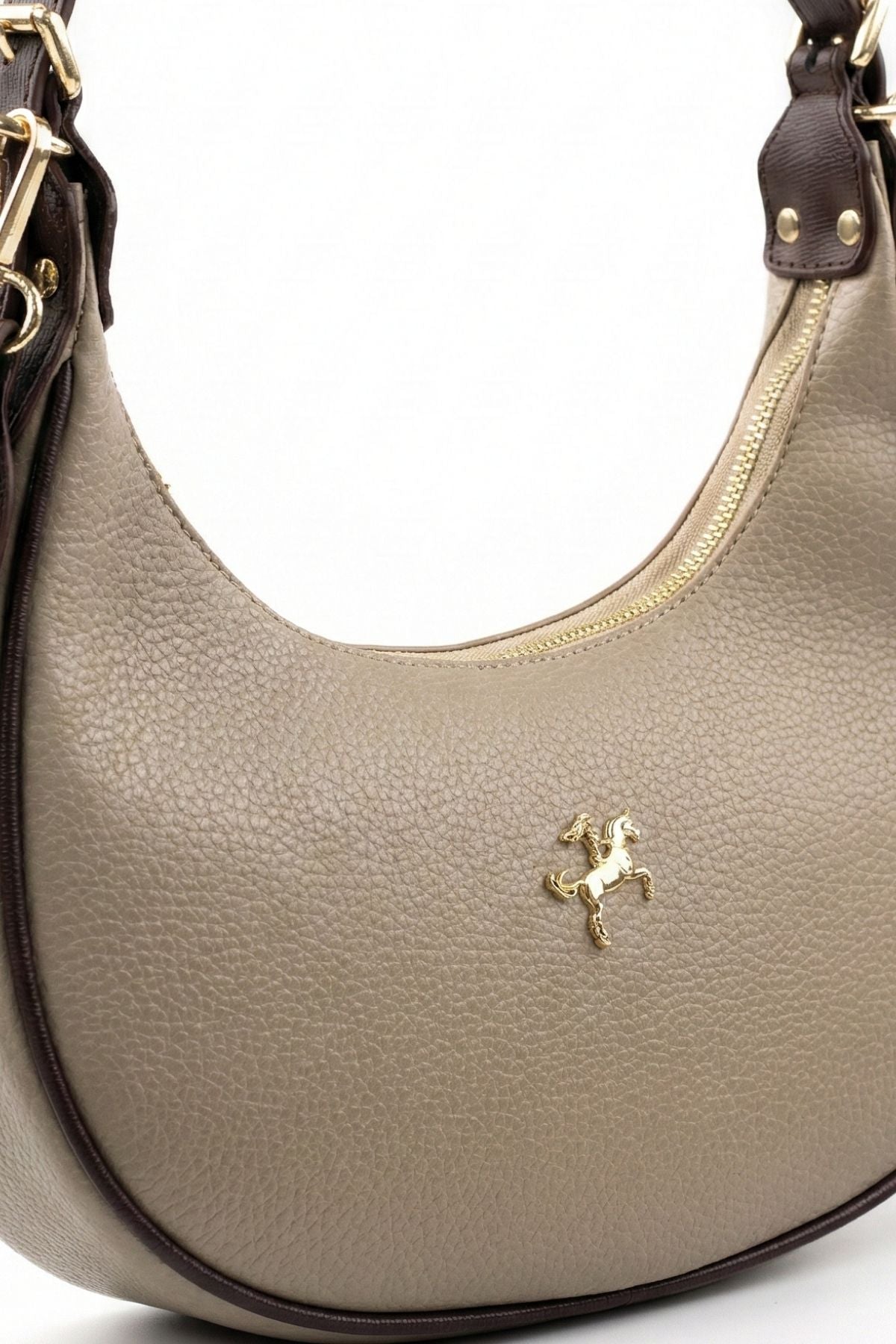 Toteva kadın günlük çanta, modern yarım ay formu ve zarif kum kahve tonlarıyla hem ofis şıklığına hem de günlük kombinlerinize mükemmel uyum sağlar.