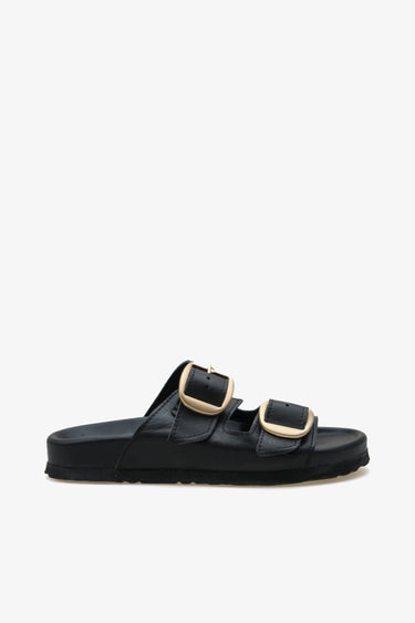 Sezonun trendi olan geniş çift bantlı tasarımı ve dikkat çeken gold metal tokaları ile hem günlük hem de plaj kombinlerinize stil sahibi bir dokunuş katar.