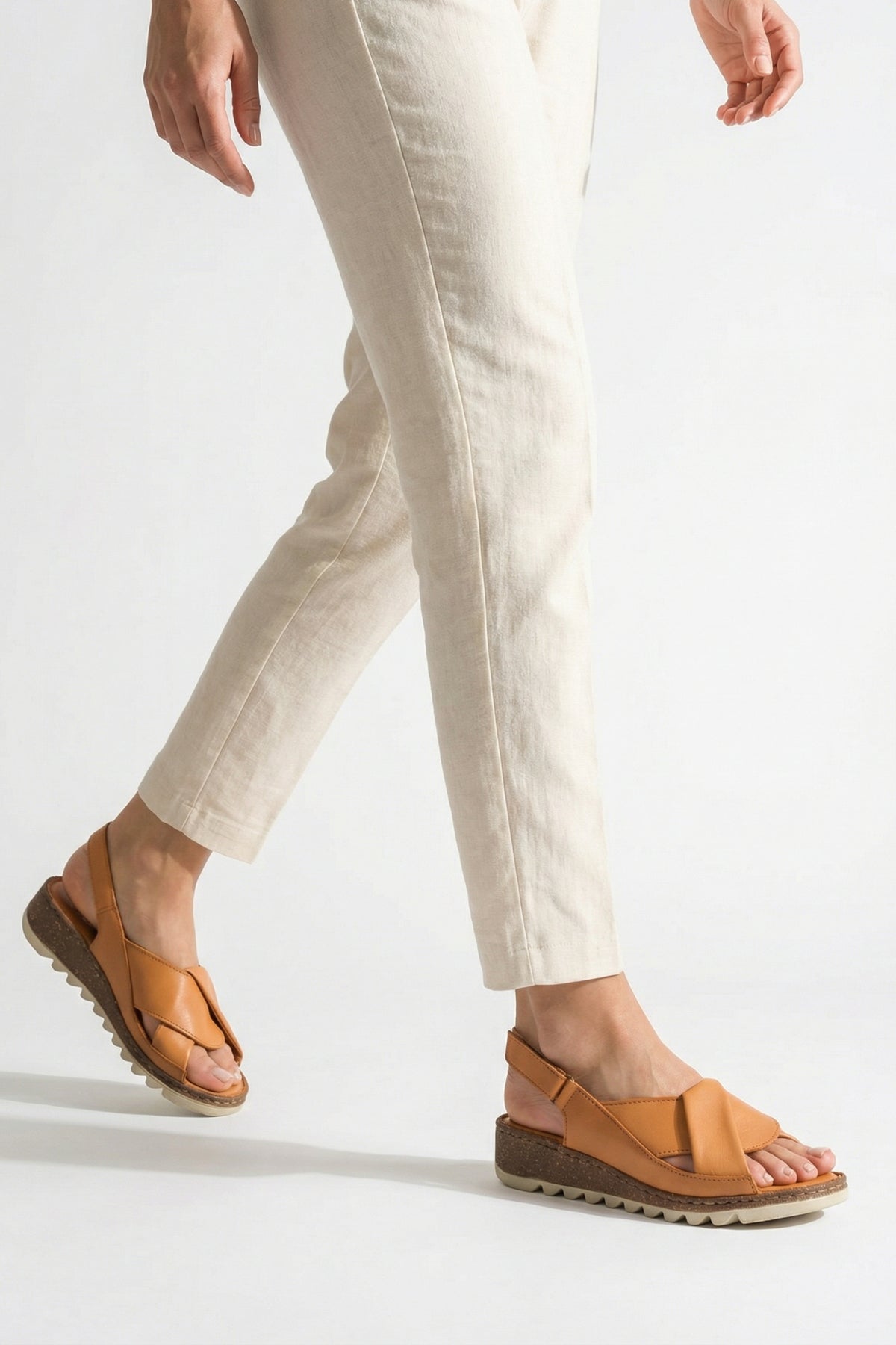 Vera Kadın Hakiki Deri Comfort Sandalet - Taba