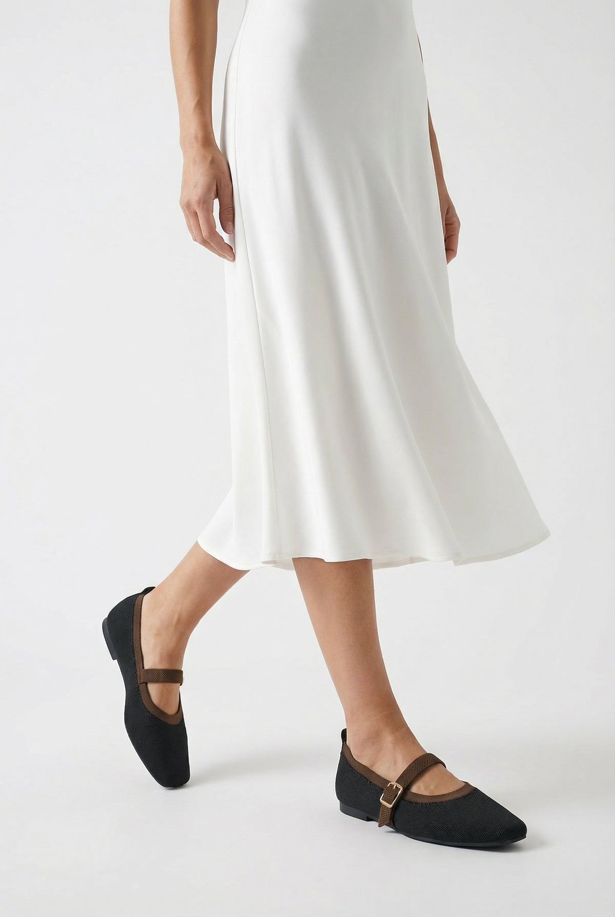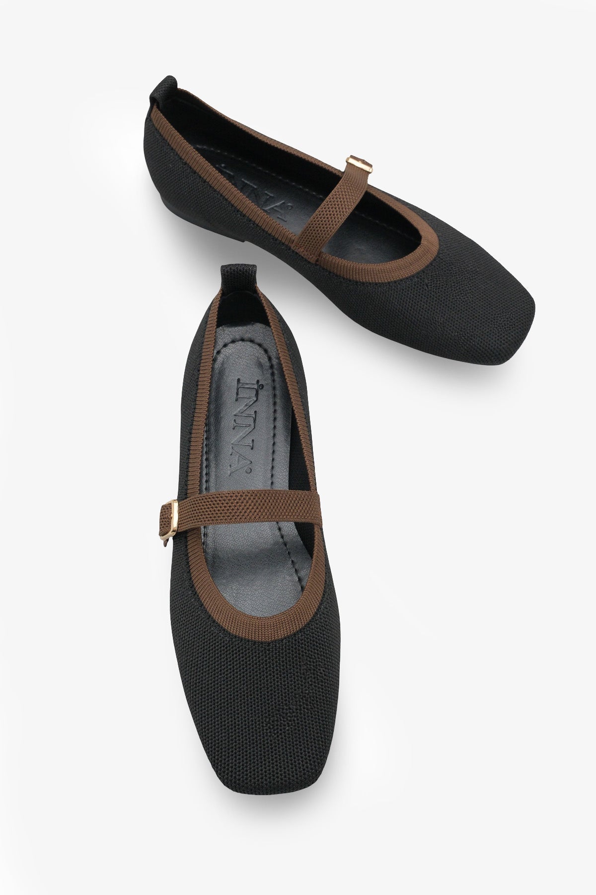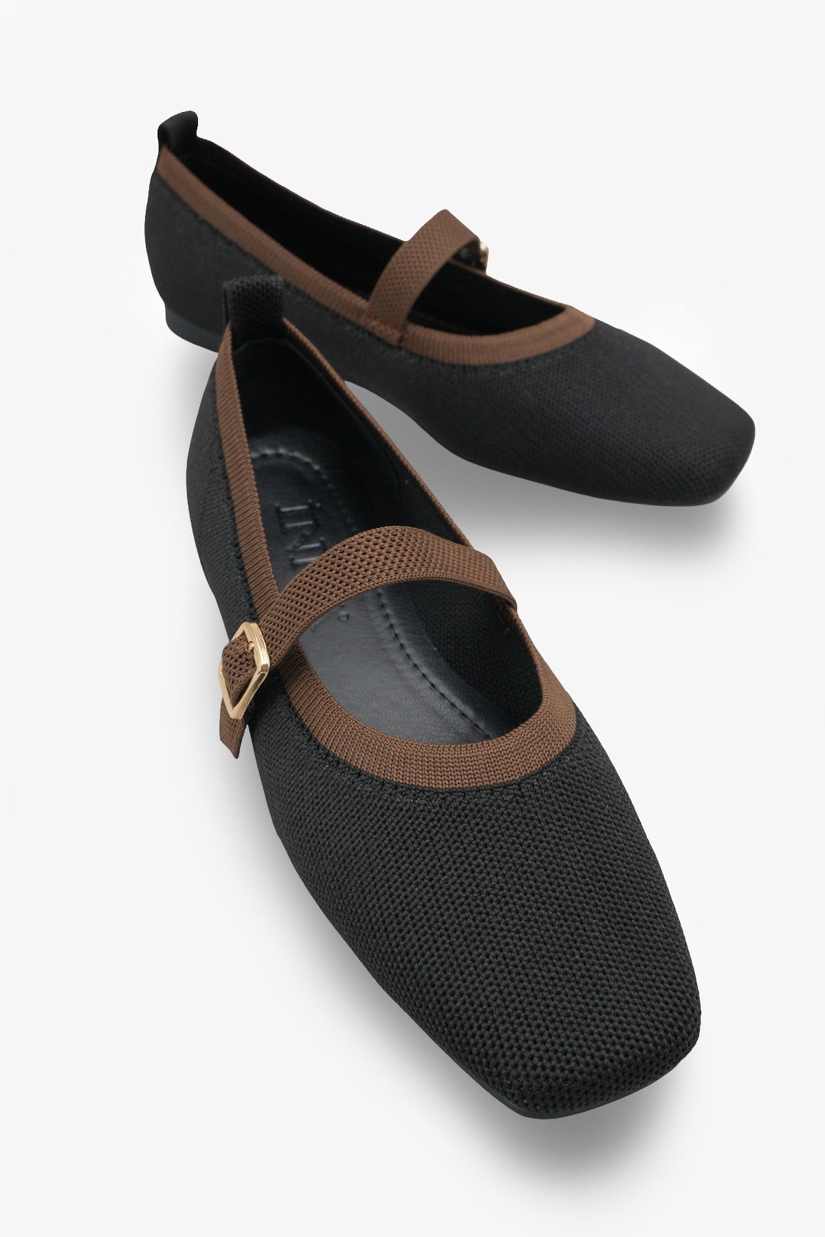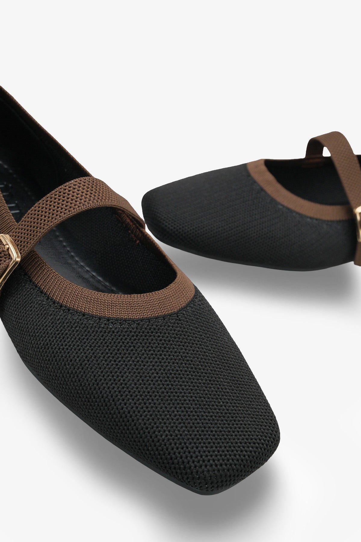 Modern kare burun tasarımı ve siyah-kahverengi renk kontrastıyla dikkat çeken bu triko babet, stilinize sofistike bir dokunuş katar.
