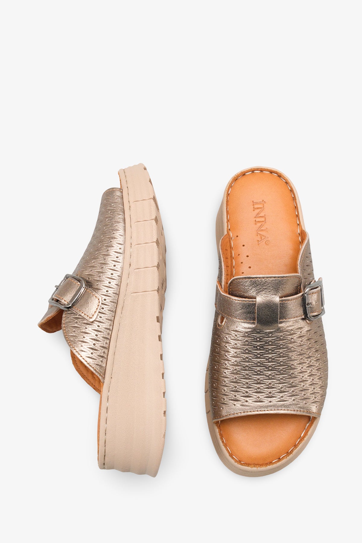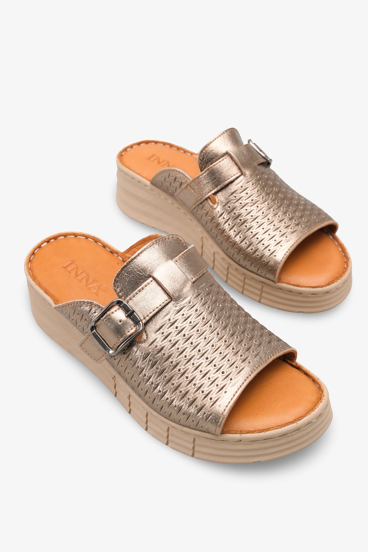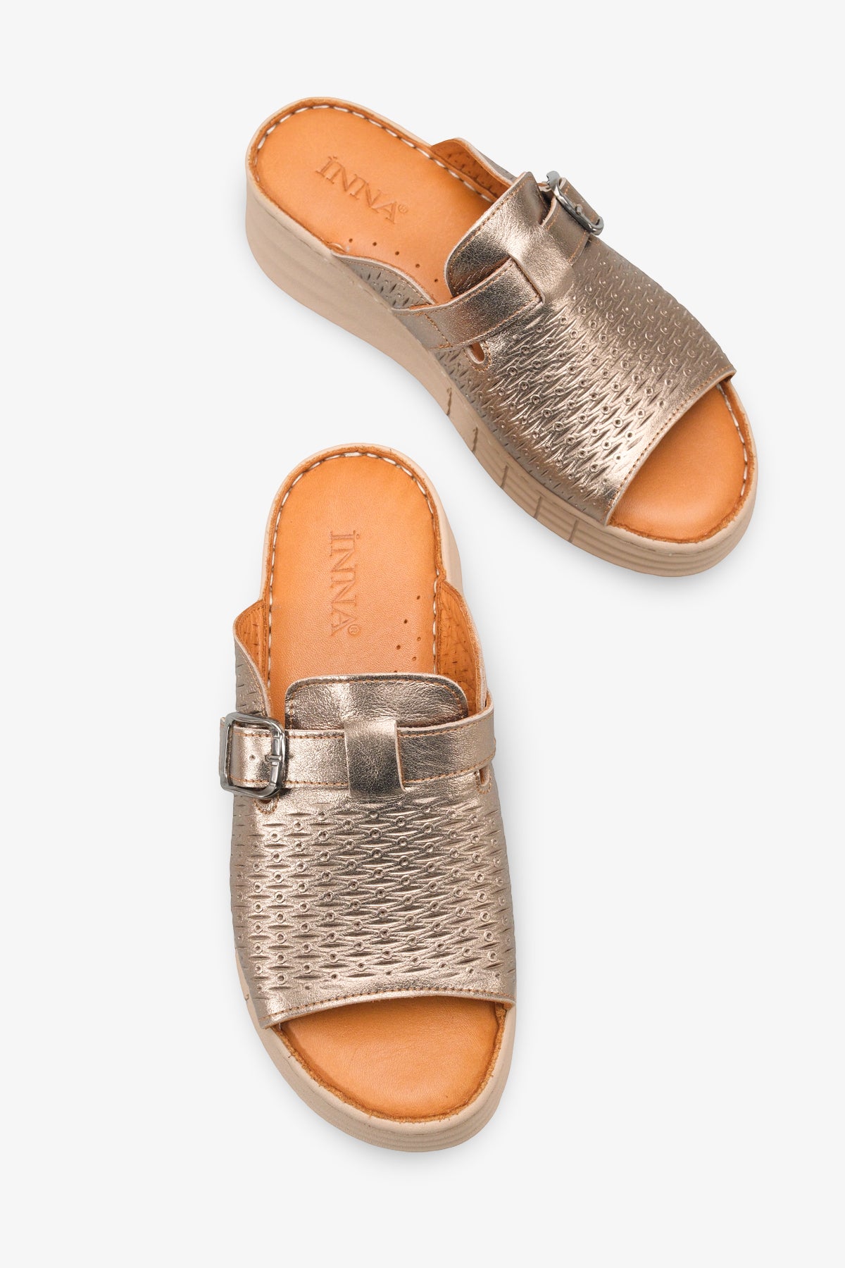 Werny Kadın Hakiki Deri Comfort Dolgu Terlik - Altın