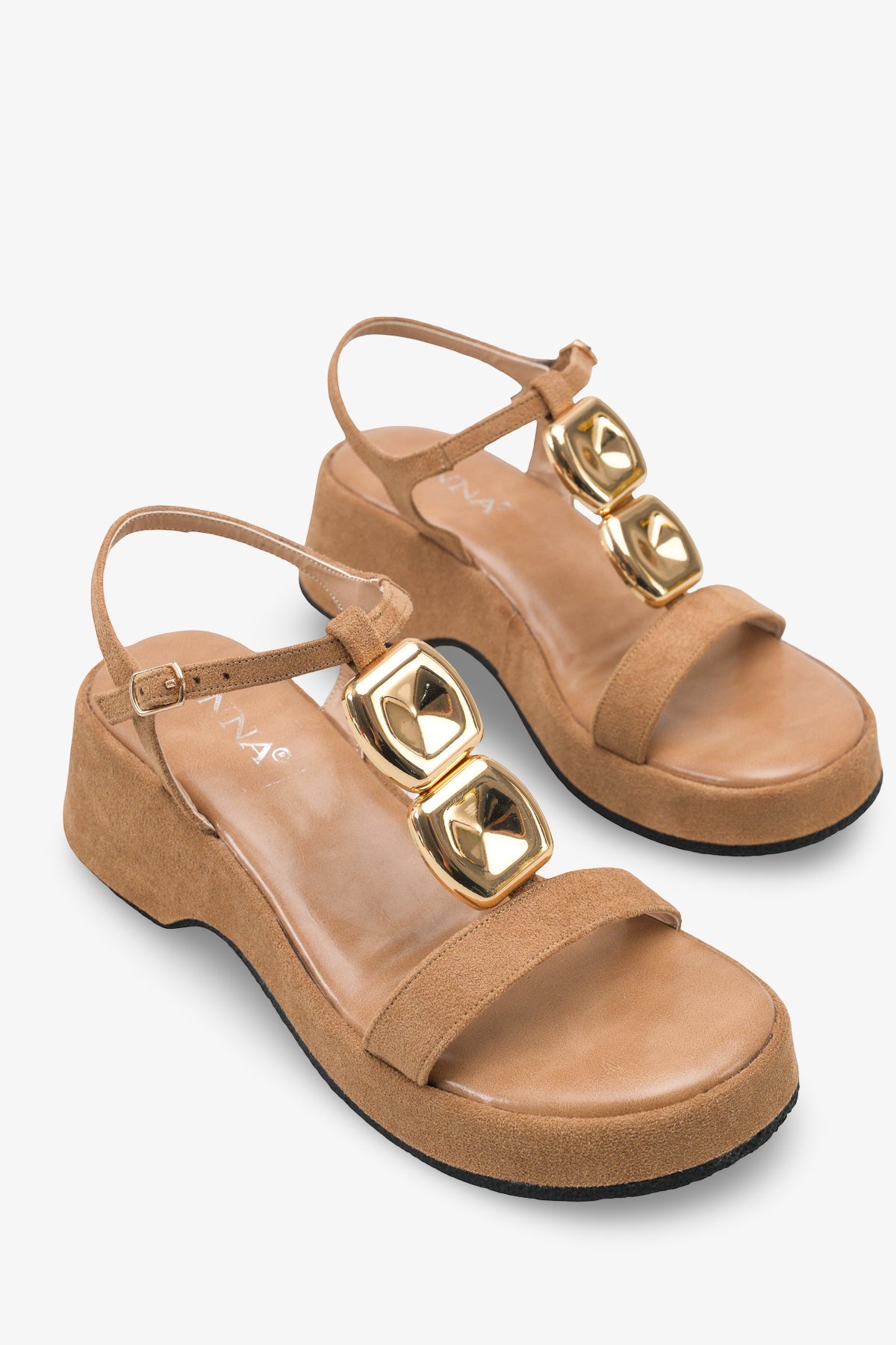 Wesly Kadın Aksesuarlı Dolgu Sandalet - Vizon Süet