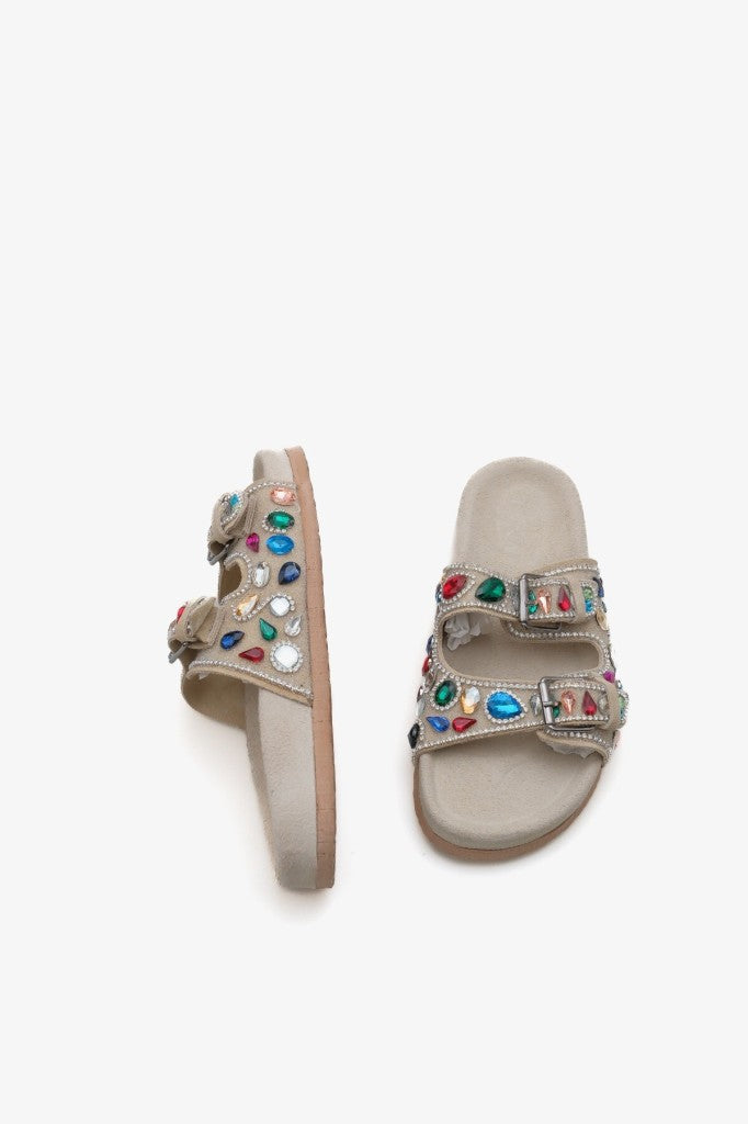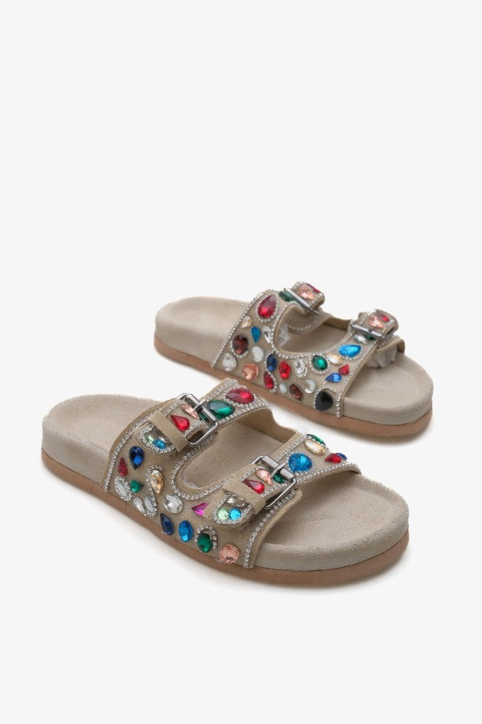 Zoe İnna Kadın Hakiki Deri Taşlı Terlik