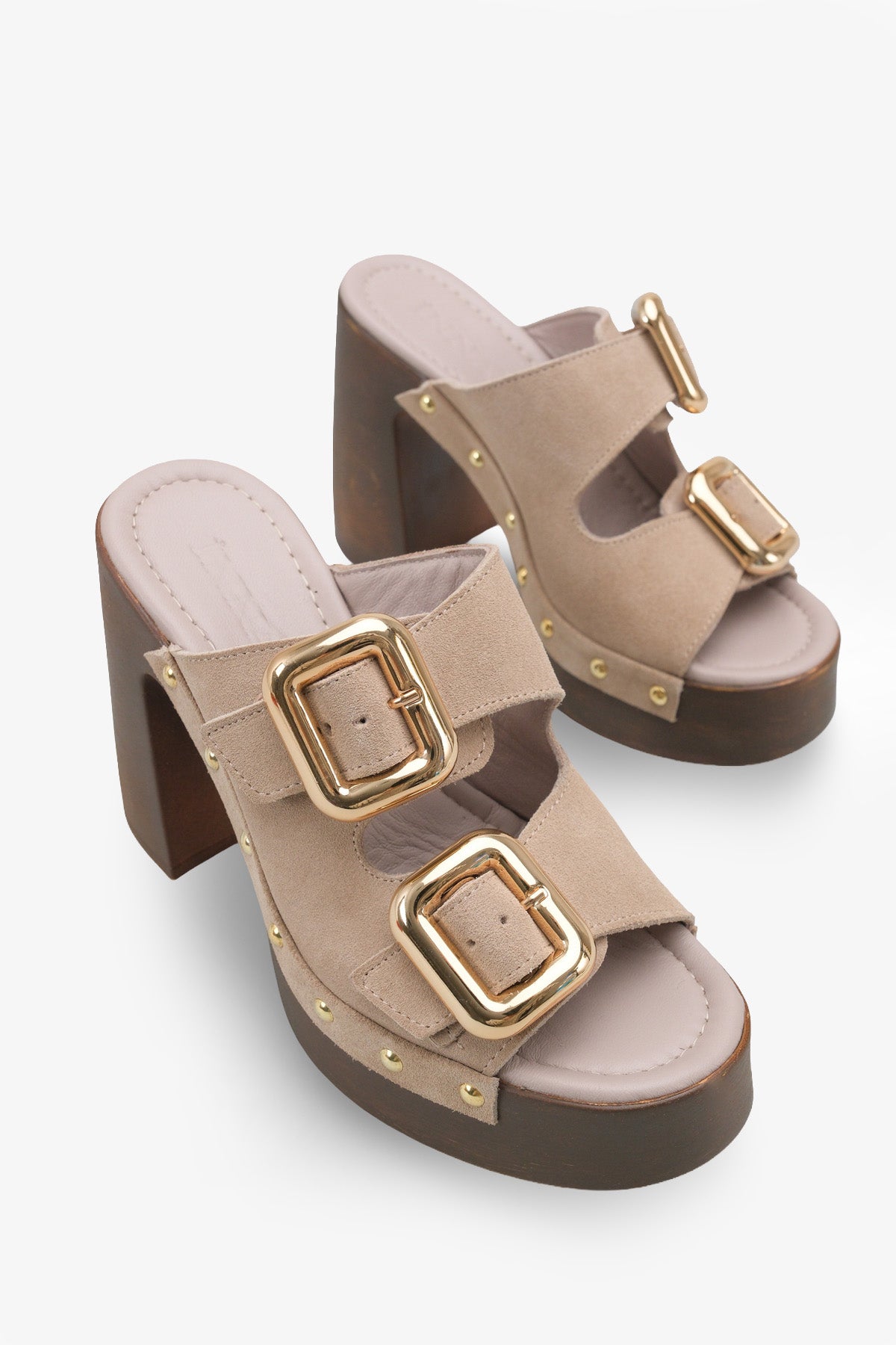 Zoya Kadın Hakiki Deri Topuklu Terlik - Vizon Süet