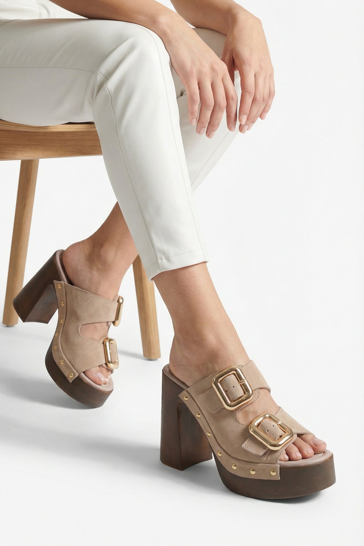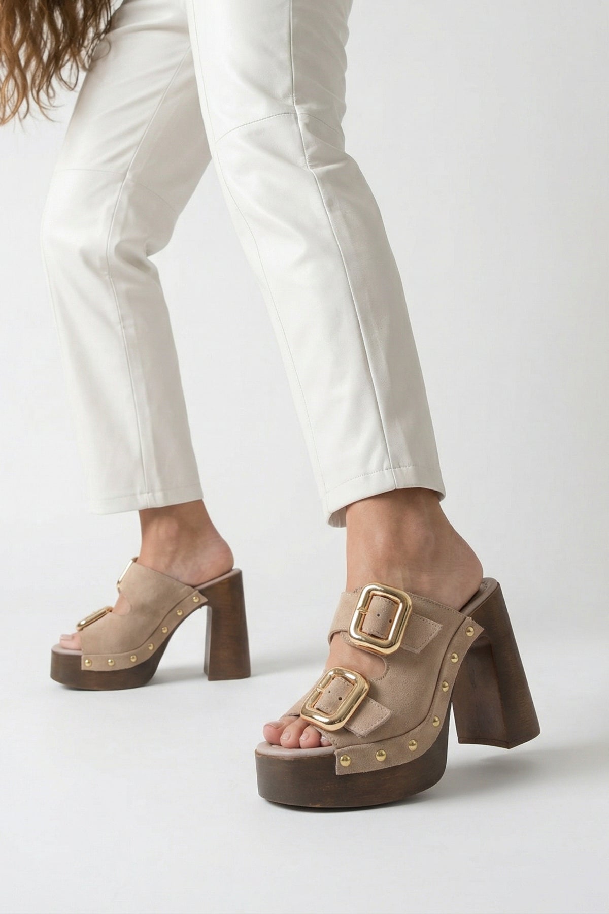 Hakiki deri süet dokusu ve altın renkli büyük toka detaylarıyla, modern tasarımı şık bir silüetle birleştirerek stilinizi bir adım öne çıkarır.